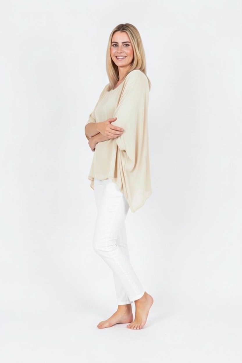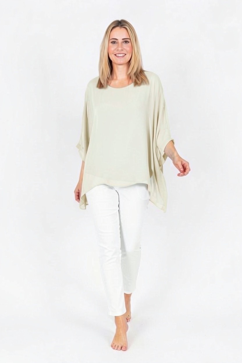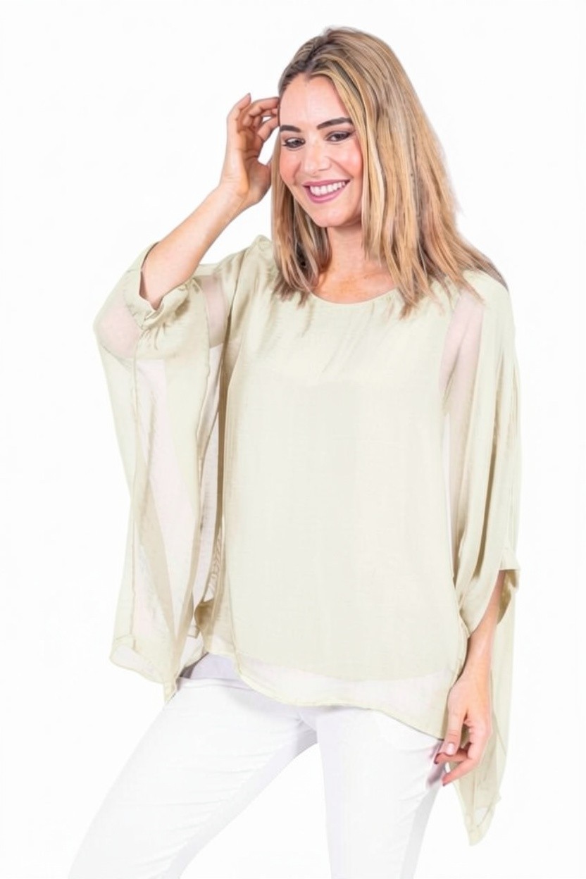 - FIT: Silk top with batwing sleeves. Fitted jersey lining attached underneath.