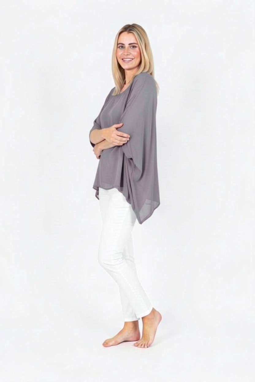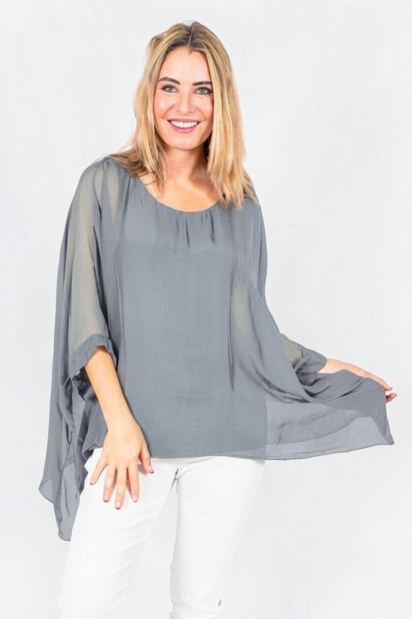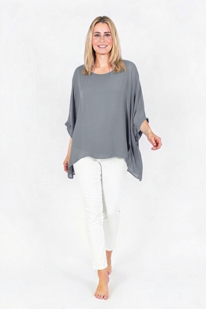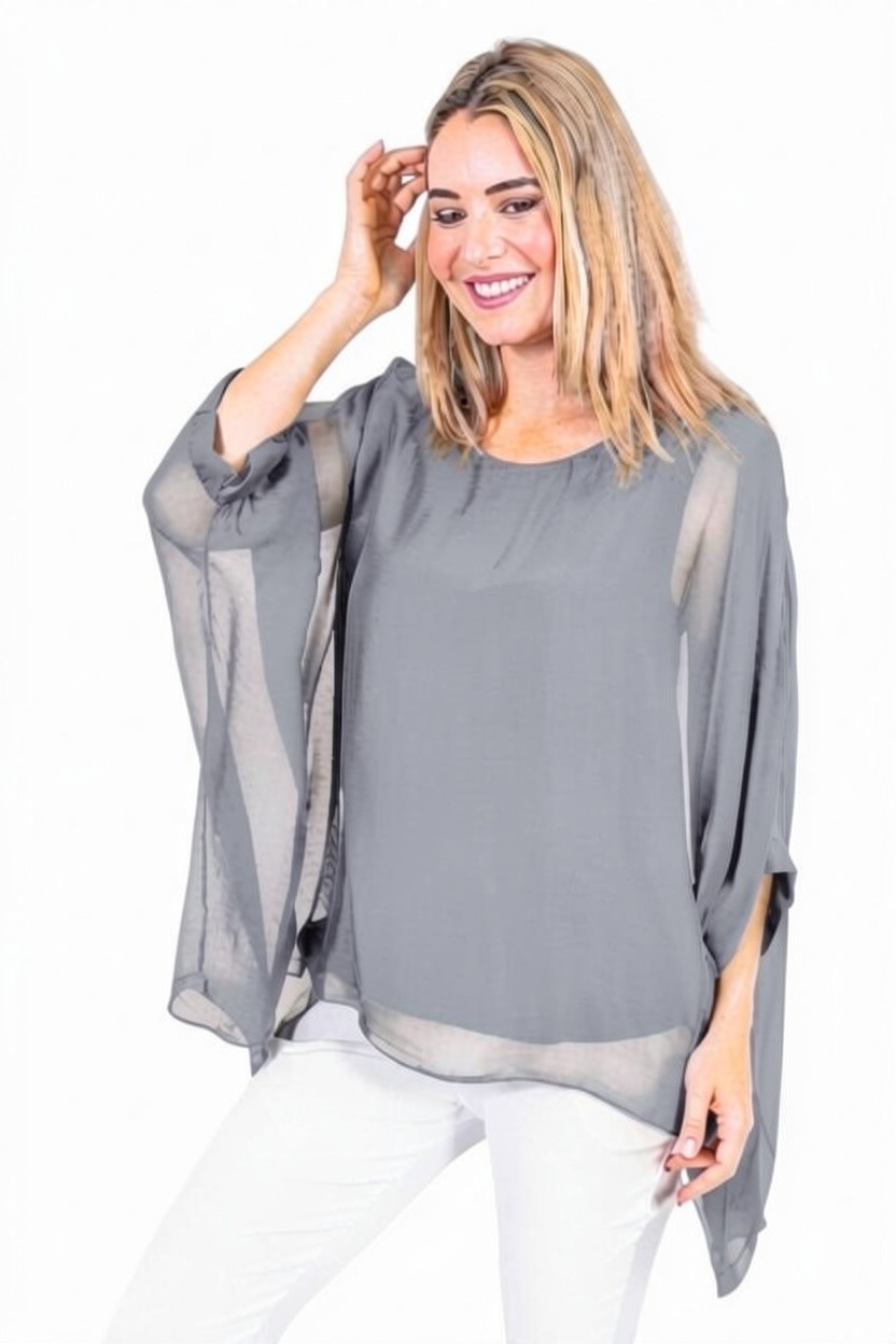 Allegra-Mid Grey-Classic silk batwing top