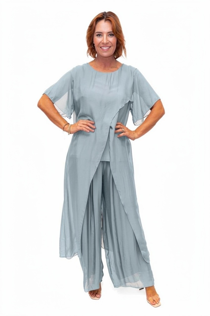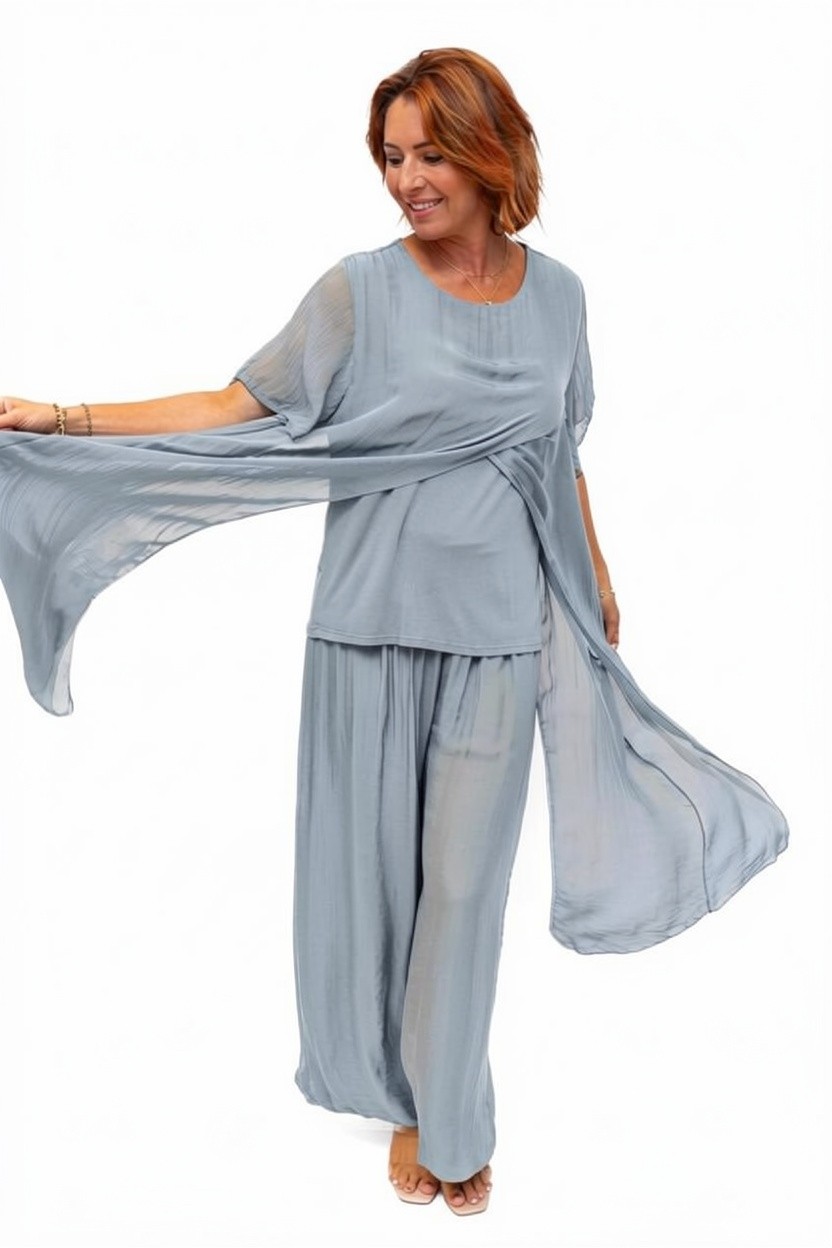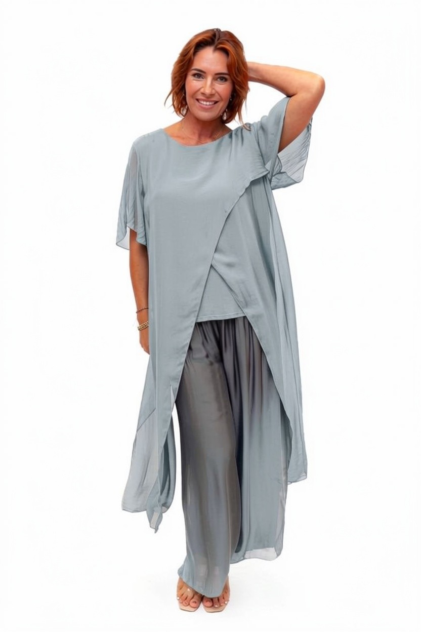 Avida- Mid Grey- Sleeved side drape silk top quantity
