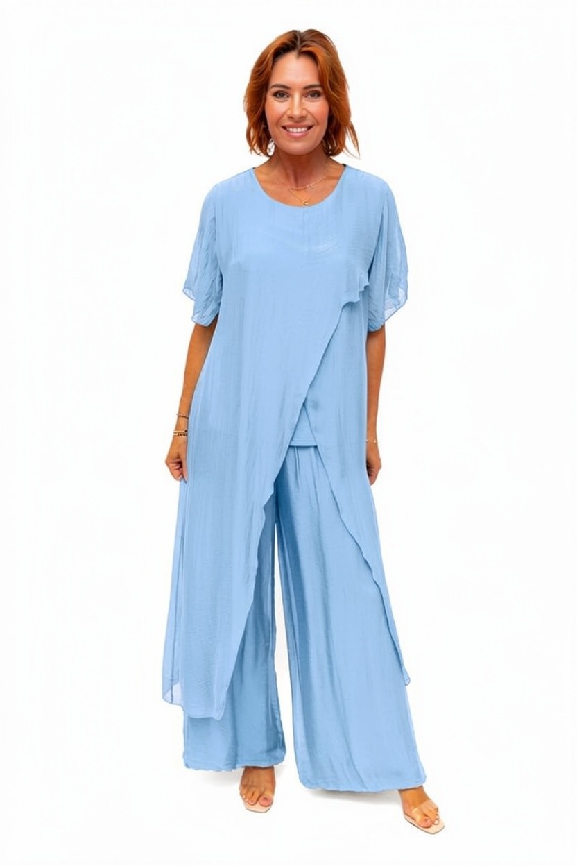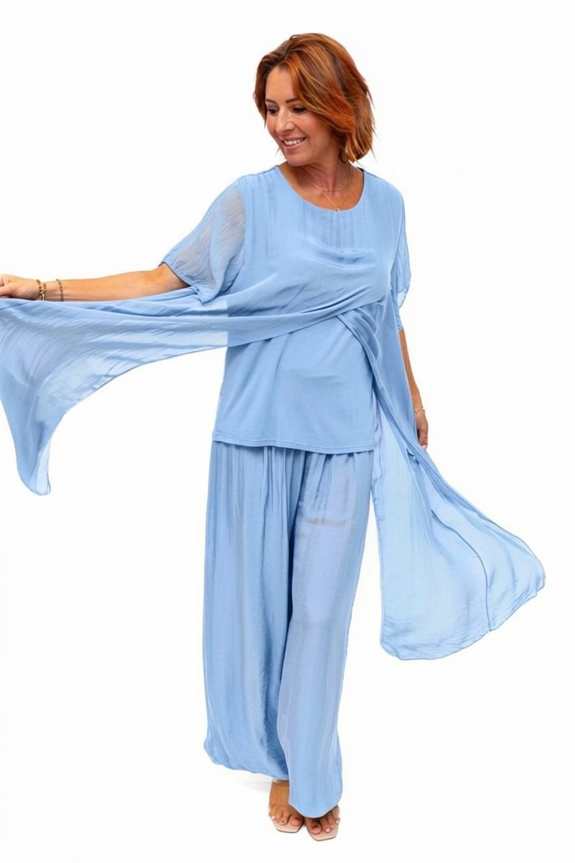 Avida-Sky- Sleeved side drape silk top quantity