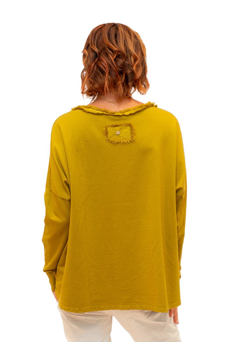 Baker- Lime- V Neck Fray Trim Satin hem cotton L/S Top