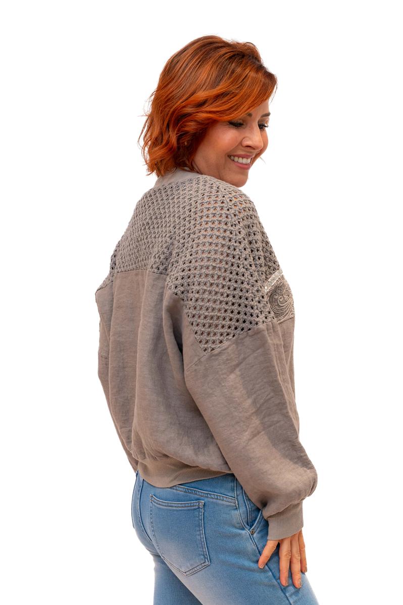 / Bayside Bomber-Taupe- Linen zip front bomber with mesh inserts