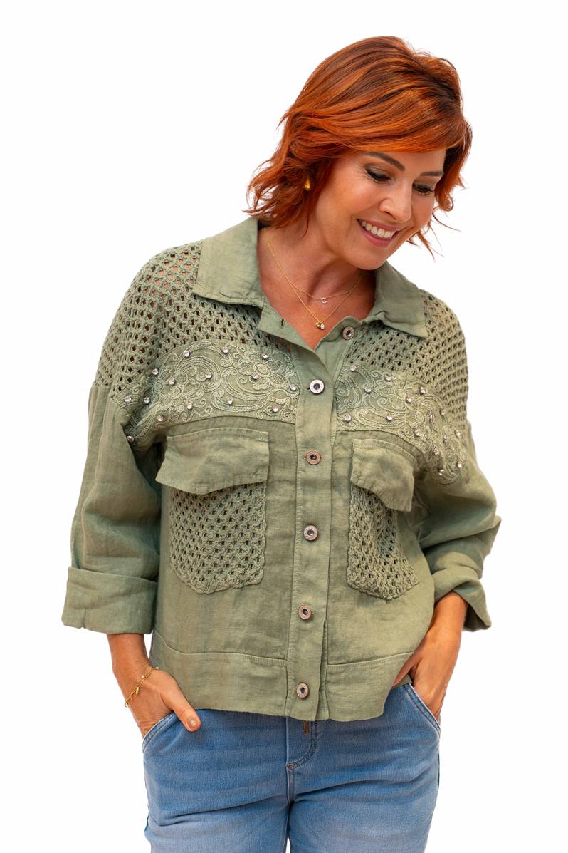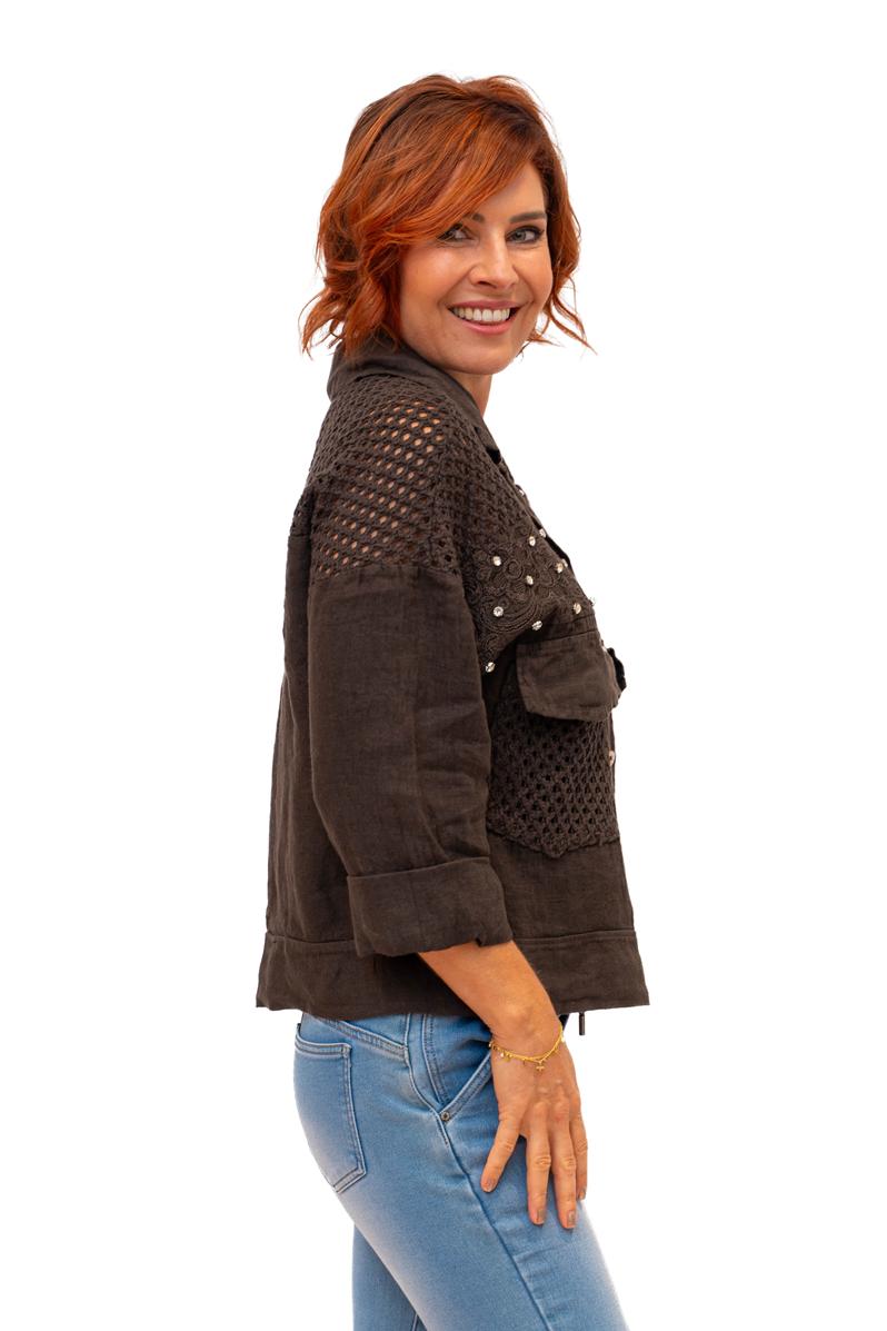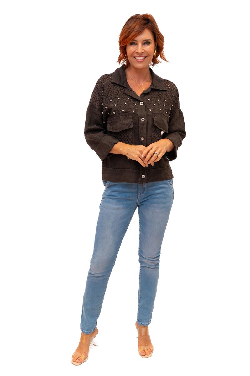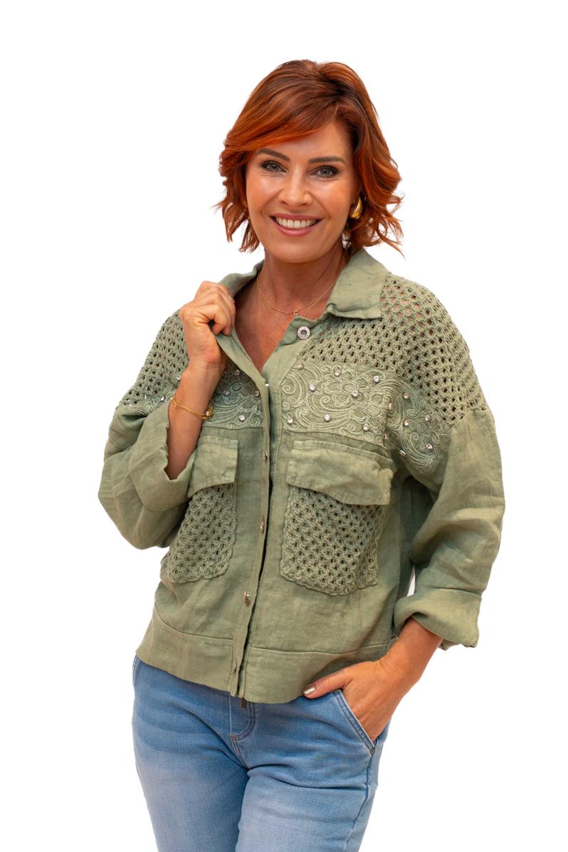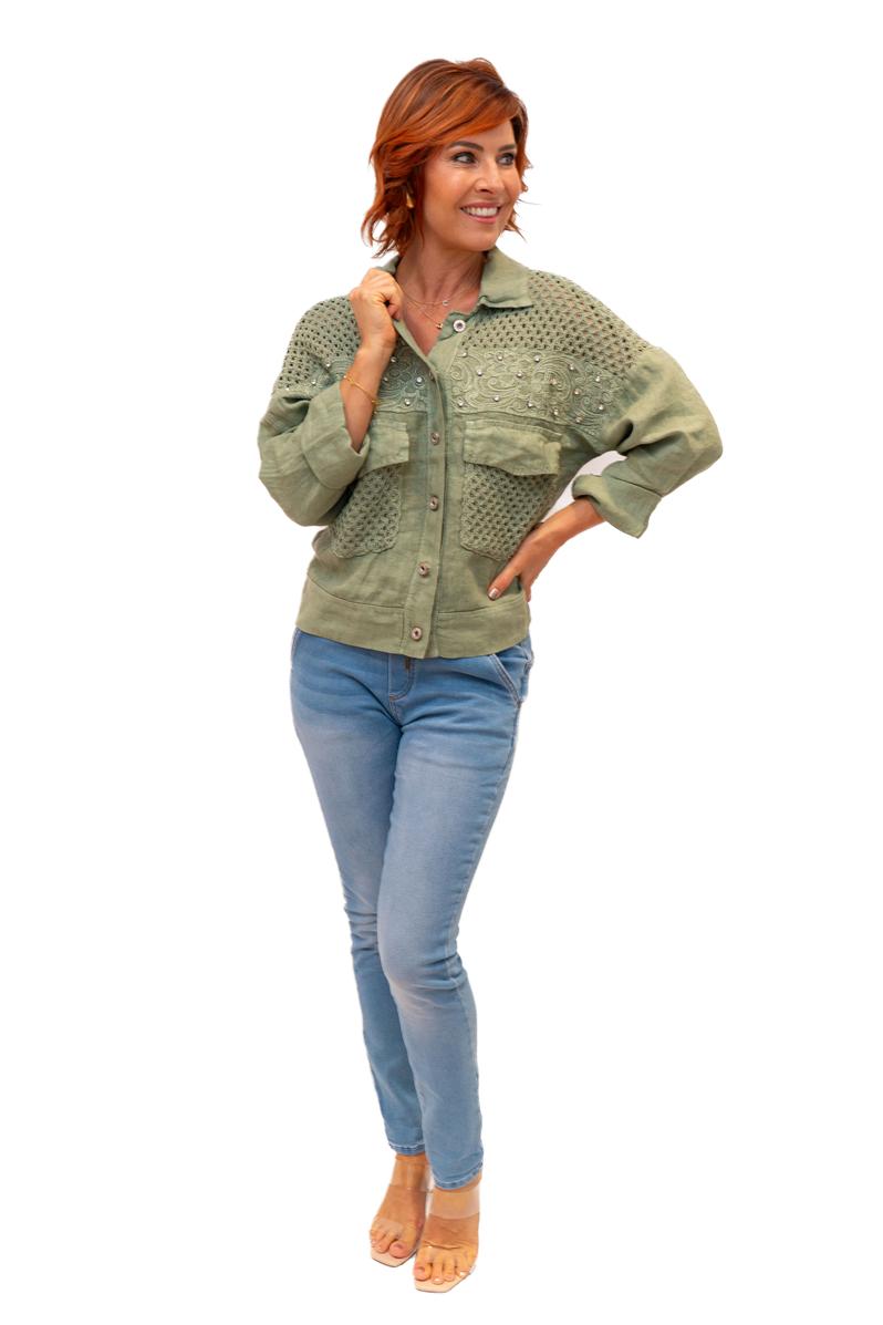 / Bayside Linen Jacket – 5 Colours with diamantes and mesh sequin details
