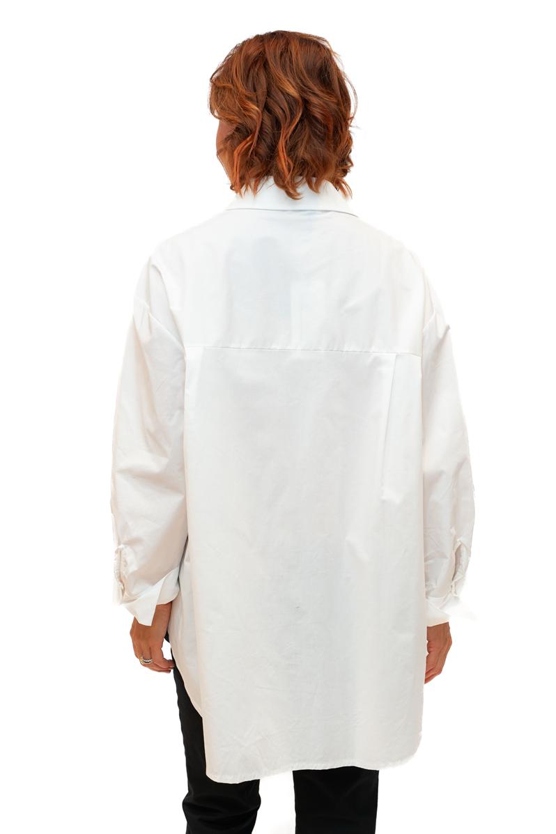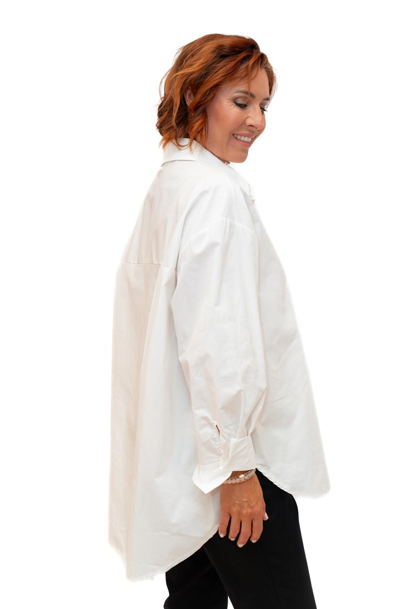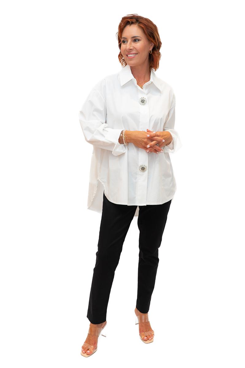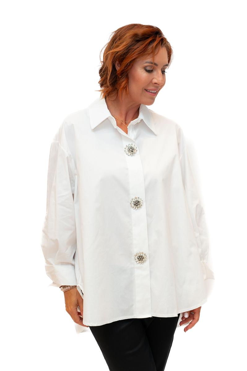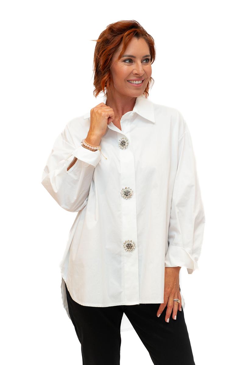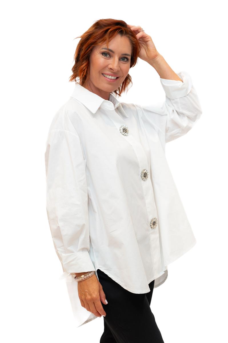 Campbell -White- Cotton Poplin oversize shirt with Diamante Buttons
