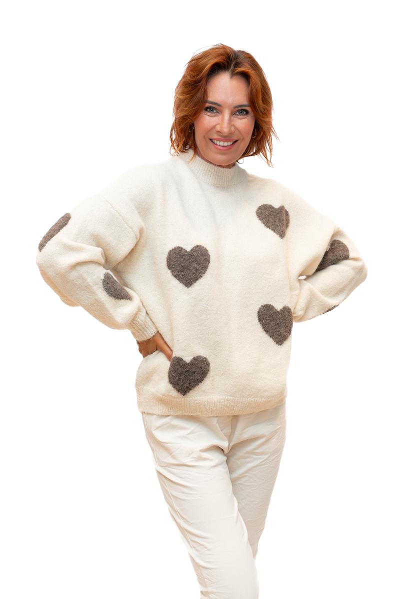 Cuore- Cream Wool Mix Knit Heart Motif Sweater