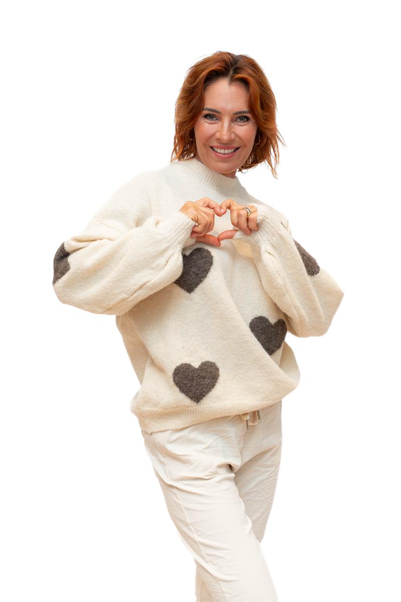 / Cuore- Cream Wool Mix Knit Heart Motif Sweater