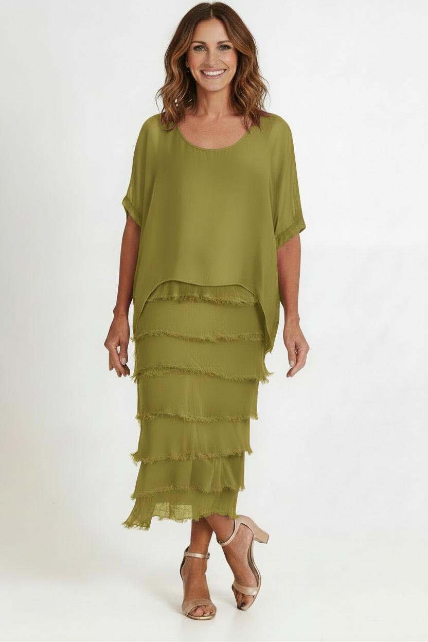 Elegance -Chartruse-Layered silk dress with batwing top