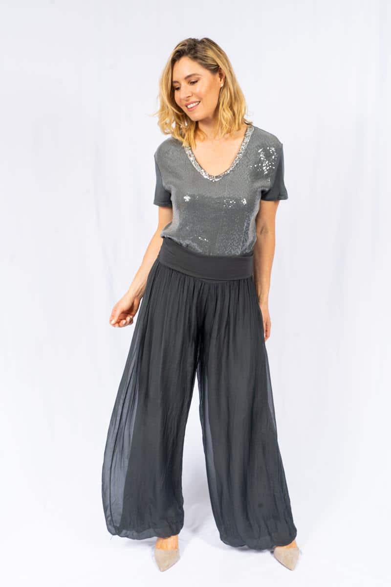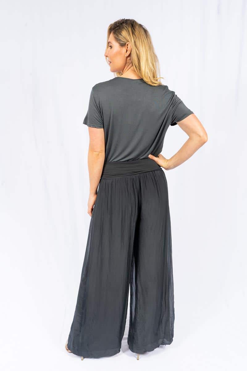 Faustina- Charcoal- Straight Leg Silk Pants