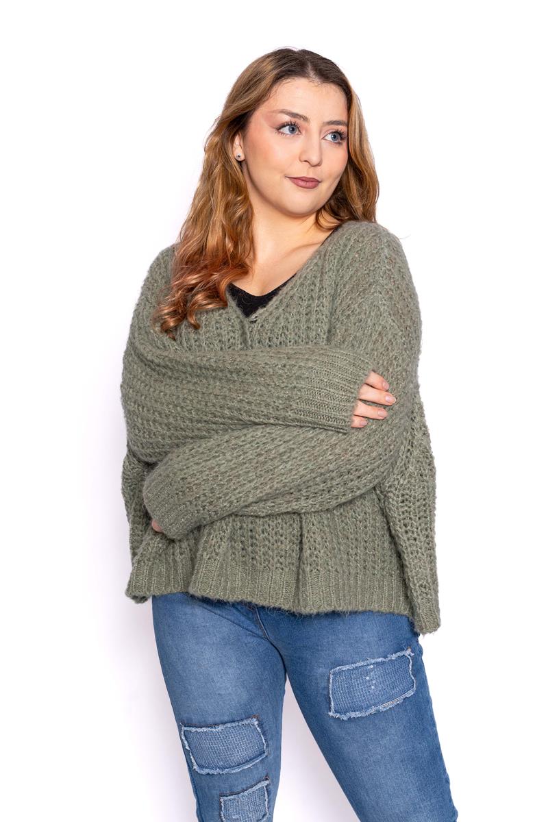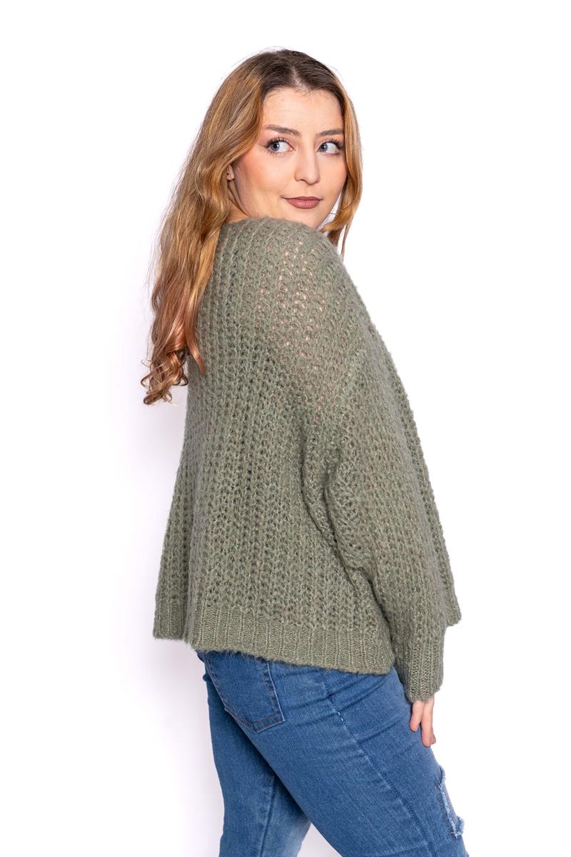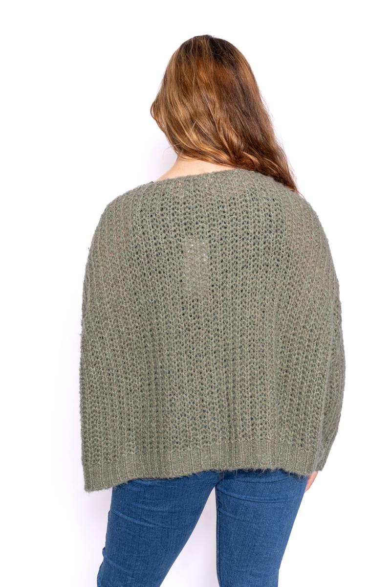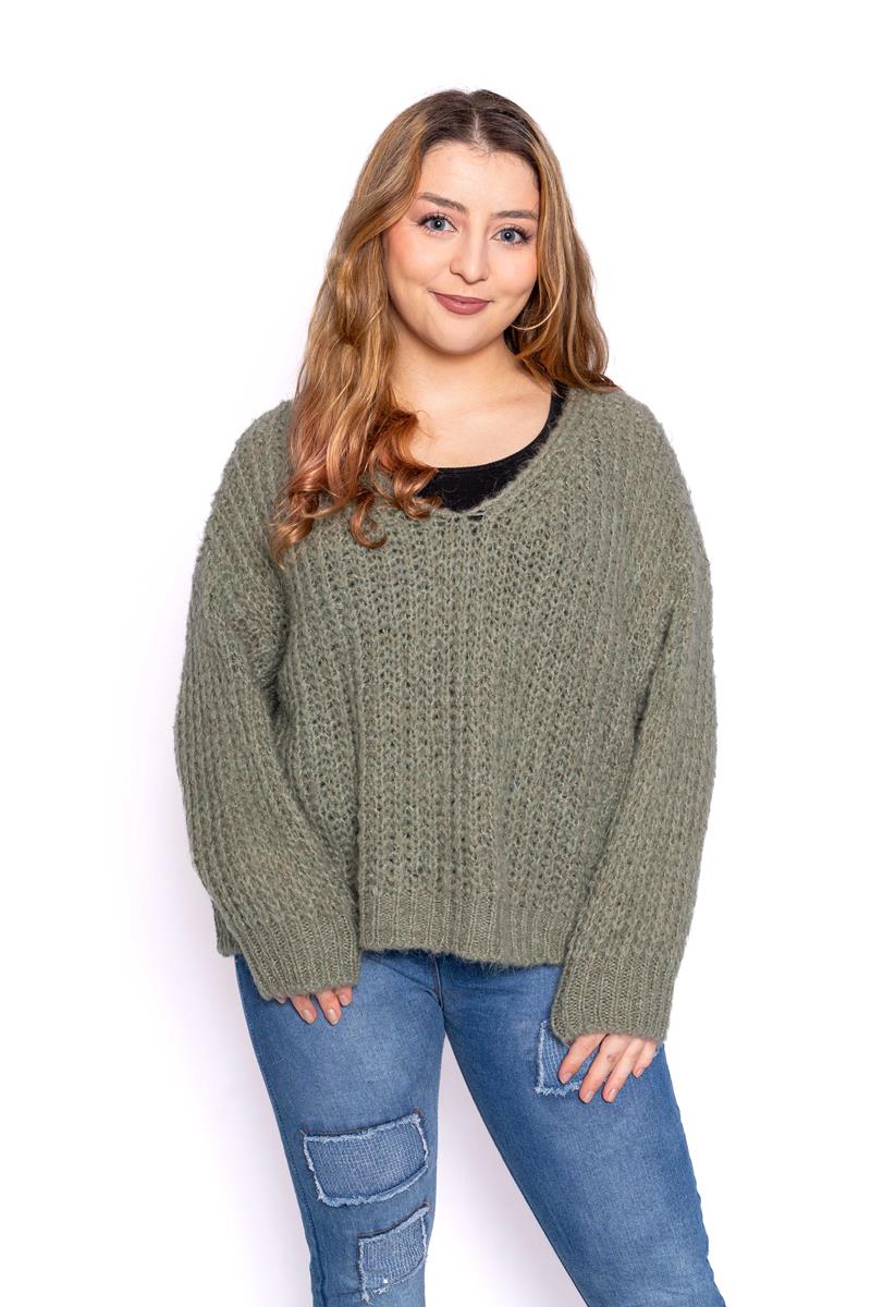 Fisher- Khaki- V-neck fisherman's rib cropped sweater quantity
