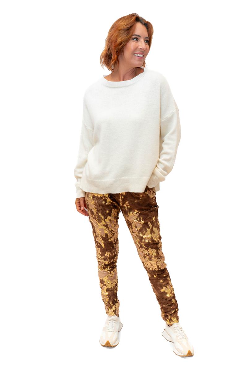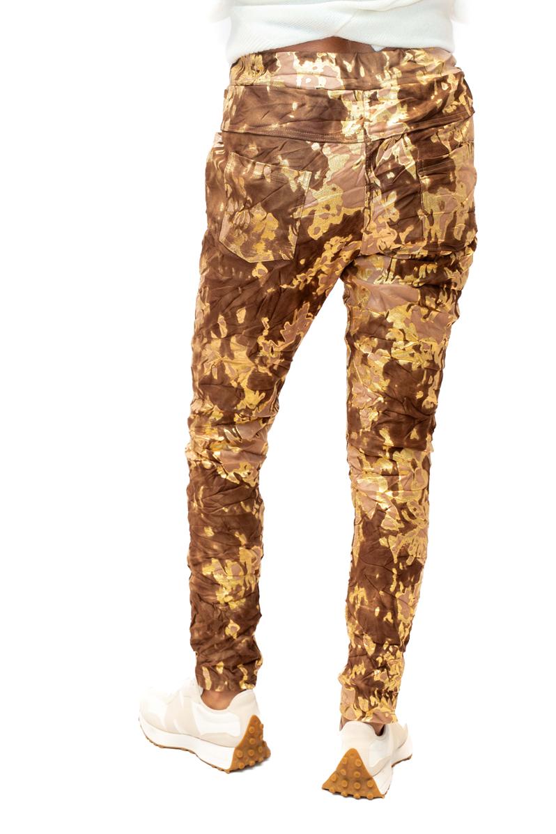 GoldStrike- Chestnut- Soft stretch pant with gold foil quantity