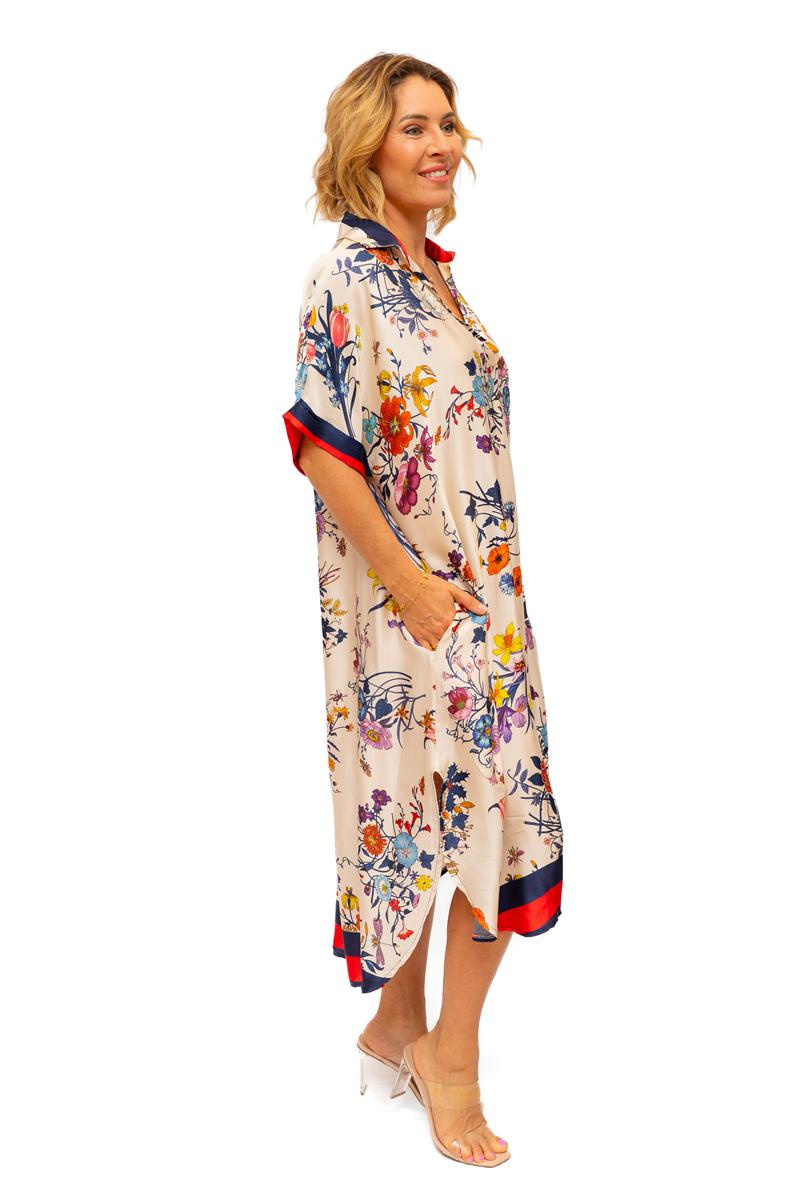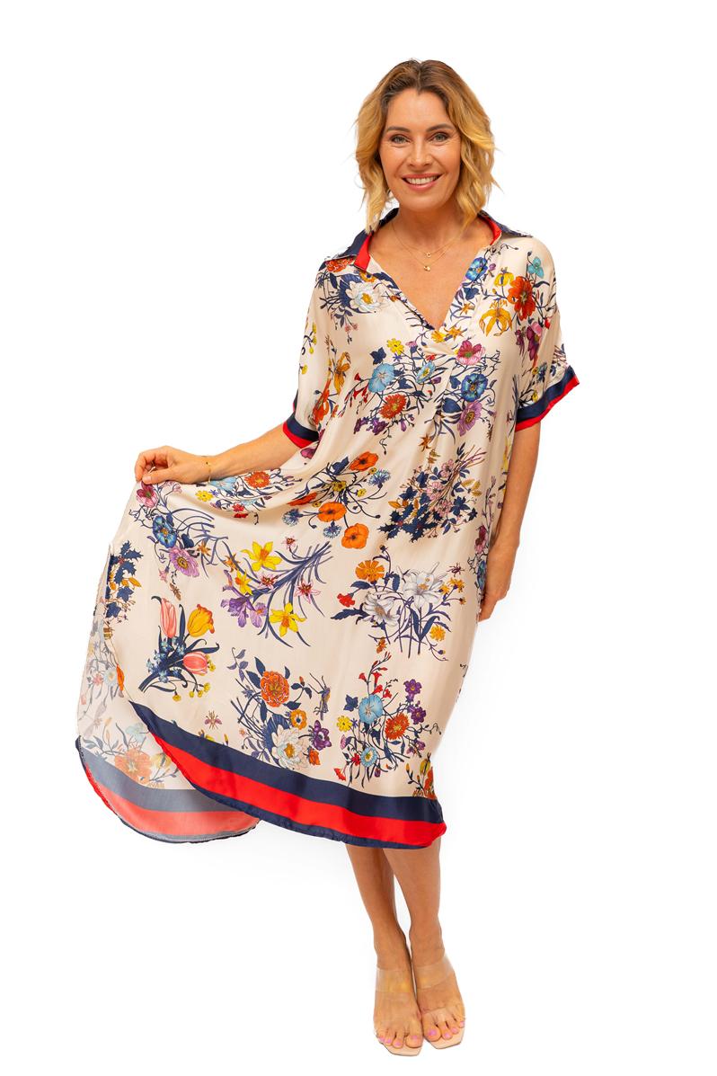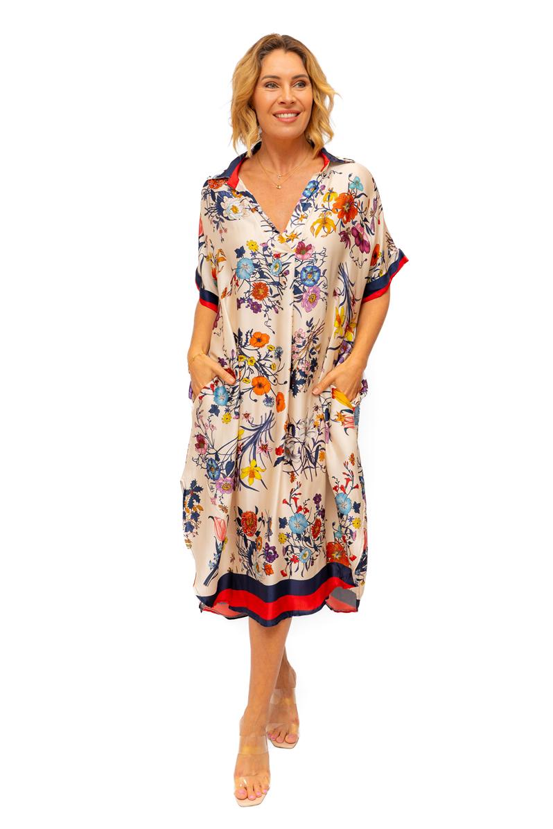 Gucciflora – Dress – Silky Satin floral dress with collar