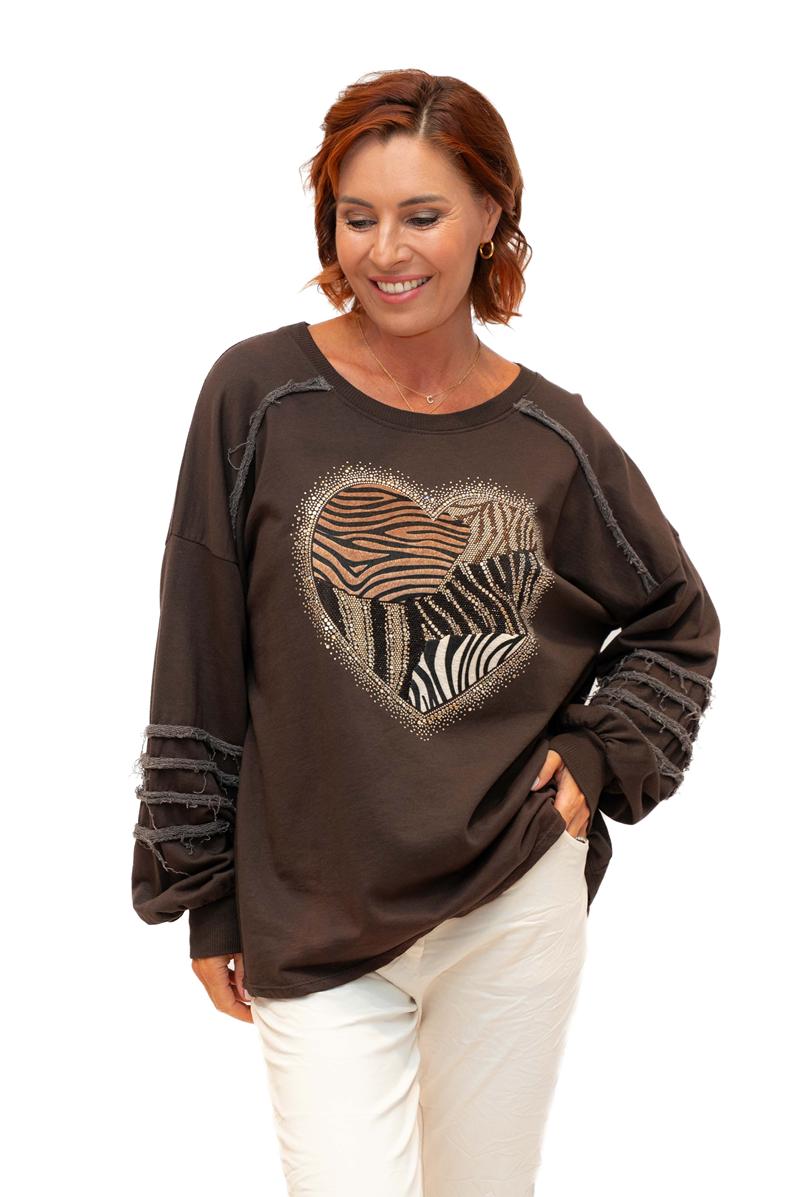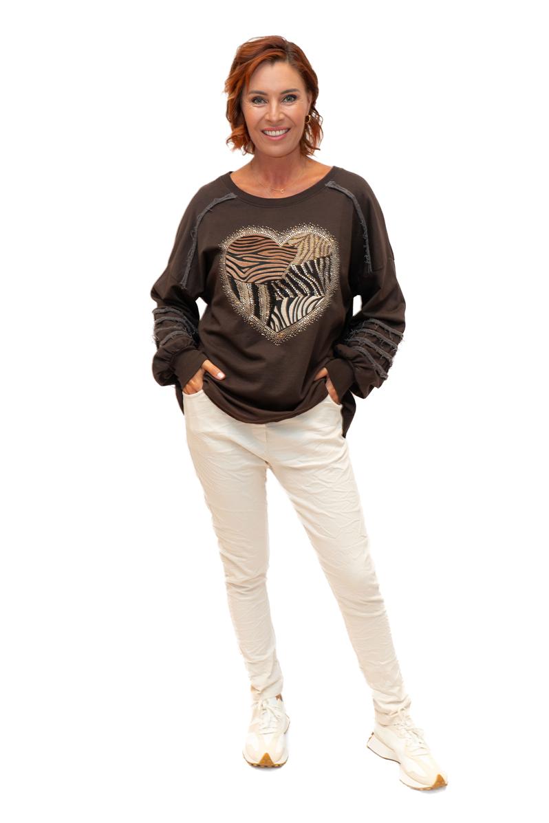 Hearty -Chocolate- Cotton sweat with animal print sparkle heart