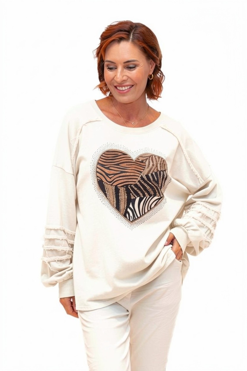 Hearty -White- Cotton sweat with animal print sparkle heart