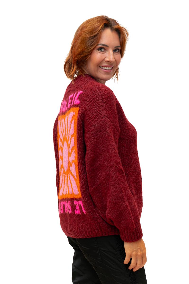Le Soleil- Bordeaux Wool Mix Knit Sun Motif Sweater