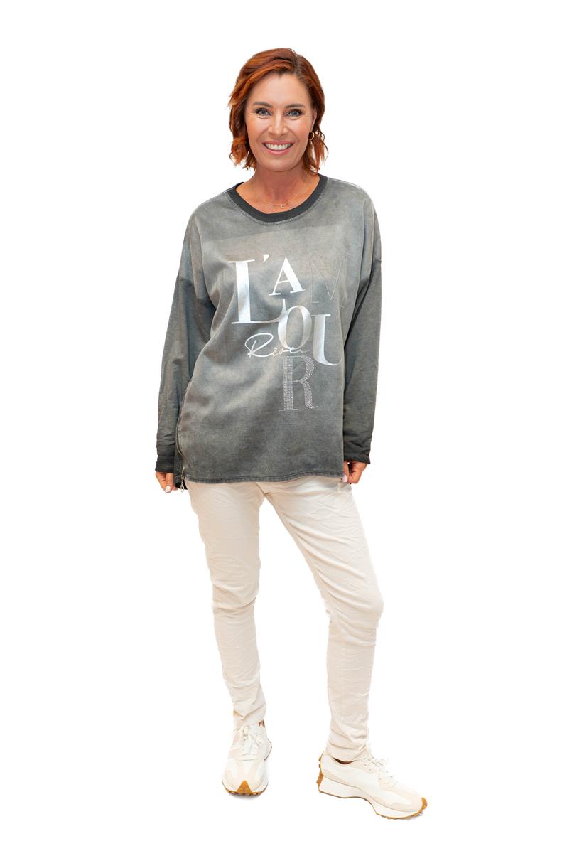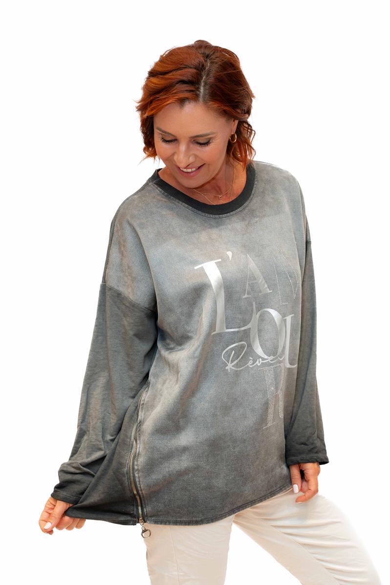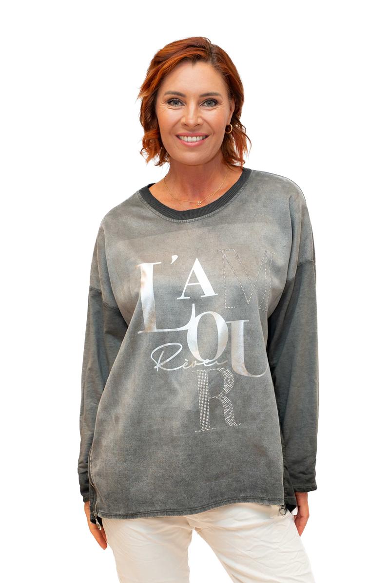 Lovey -Charcoal- L’Amour Sweat with zip hem