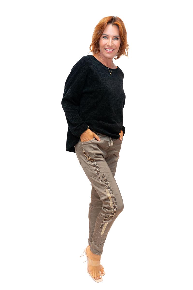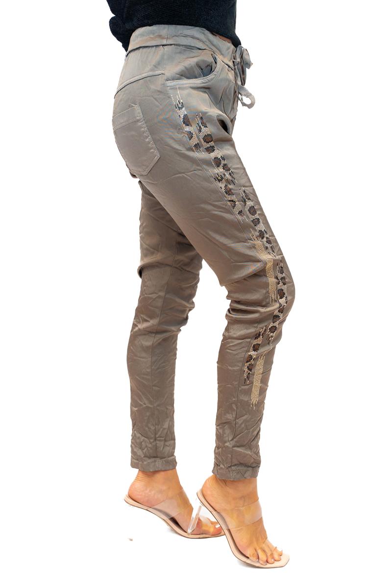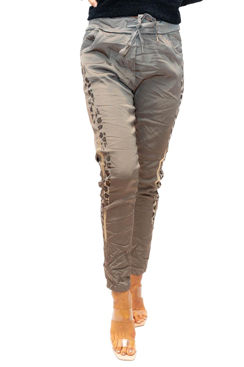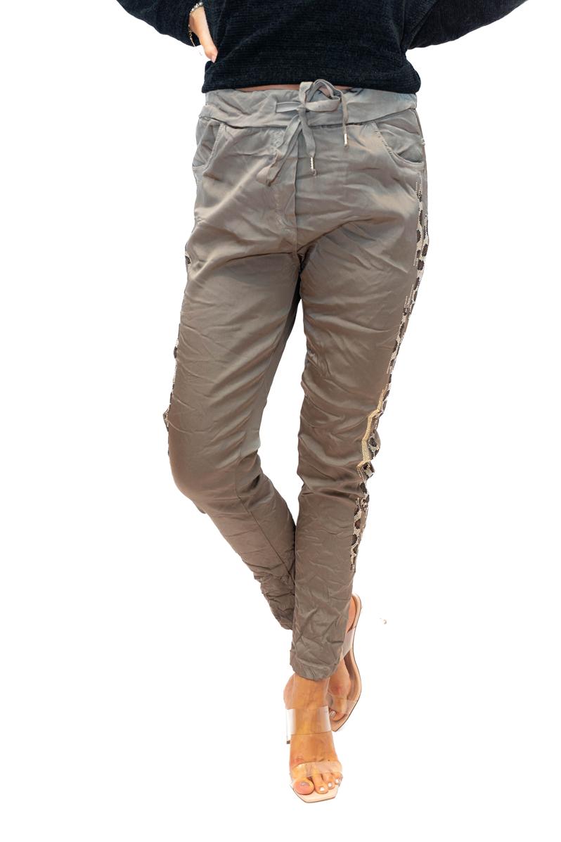 Ludo Pant -Taupe- Shiny stretch pant with Glitter side embelishment quantity