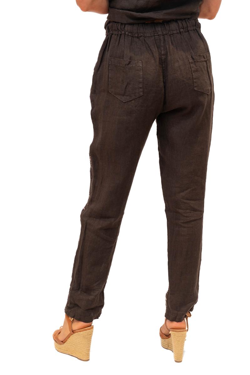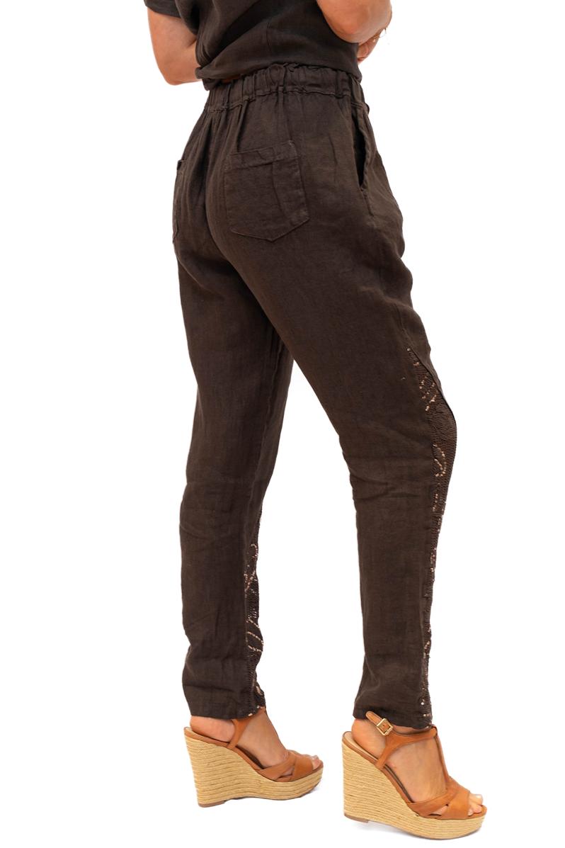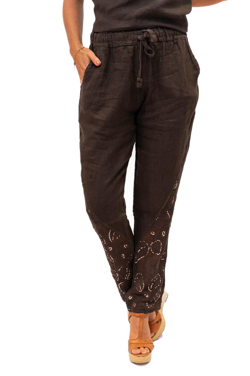 Mariner Pant-Chocolate- Linen pant with sequin mesh panel quantity