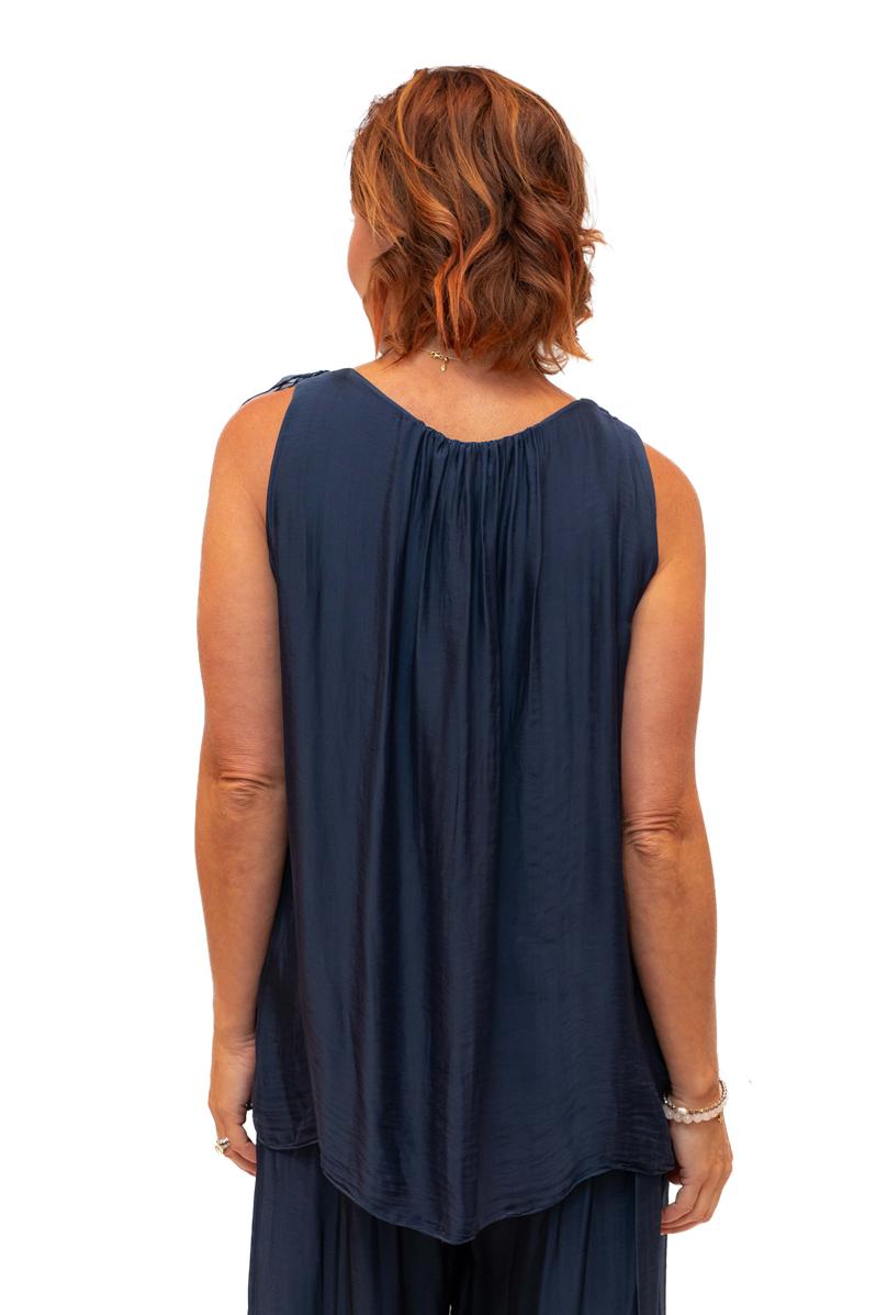 / Martha- Navy O/S- Martha Long Silk Top with Ruffle