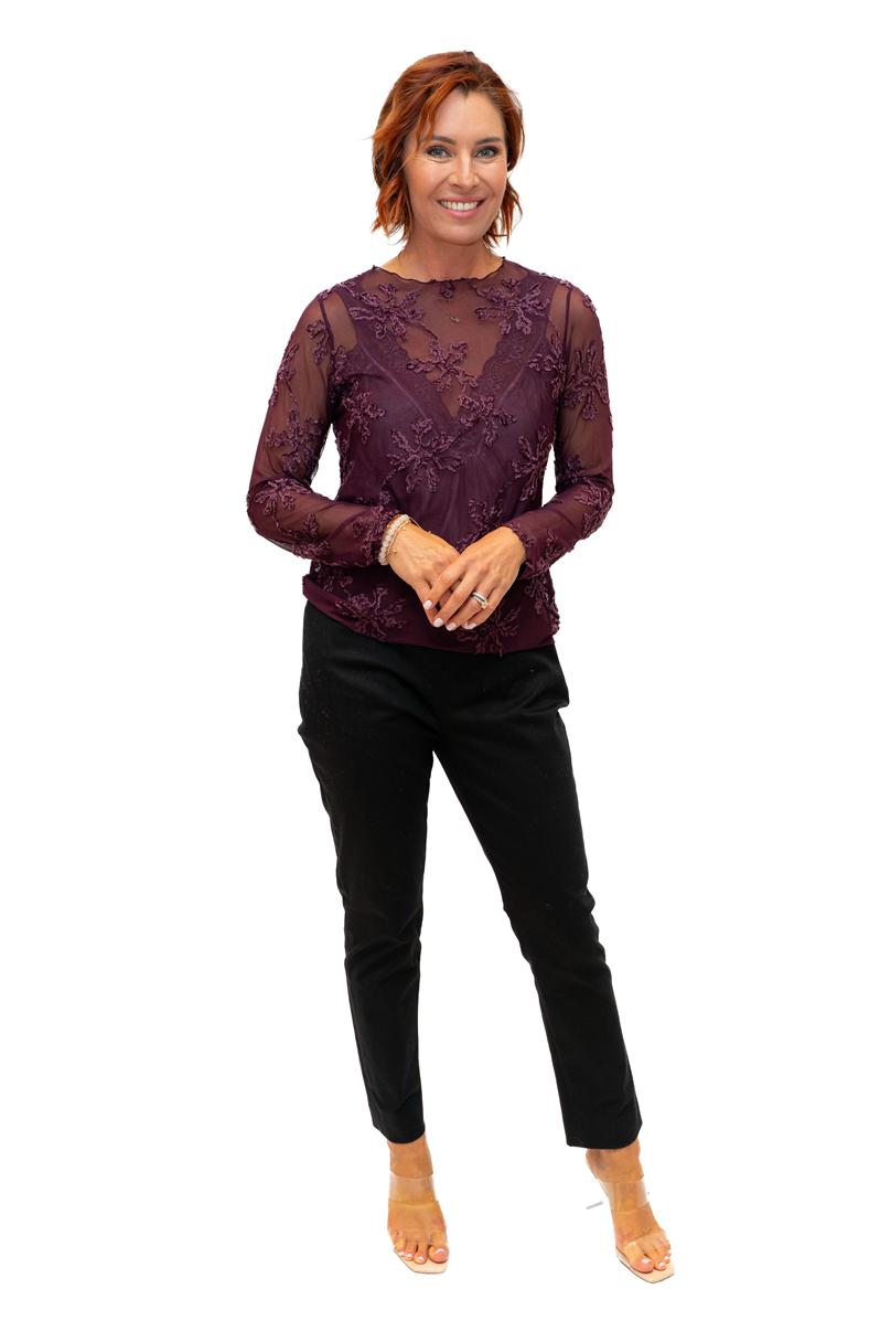 Minx -Bordeaux- Mesh embroidered longsleeved top