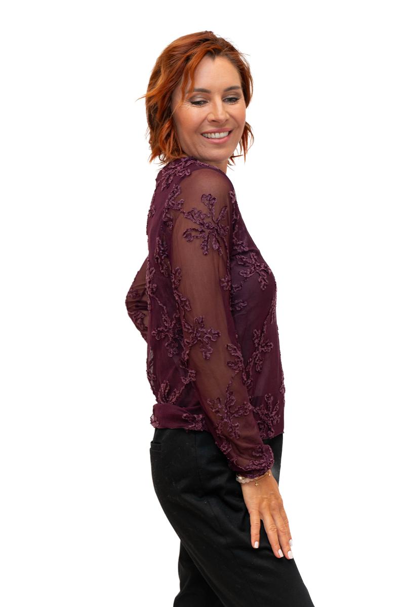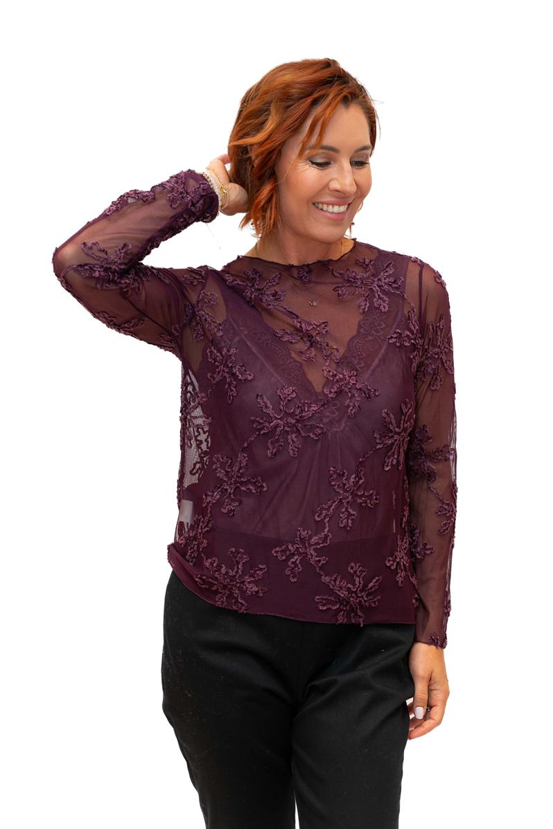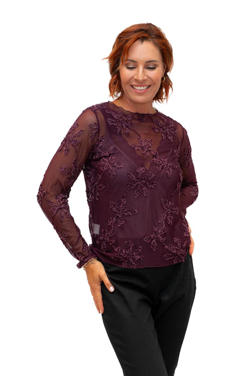 Minx -Bordeaux- Mesh embroidered longsleeved top quantity