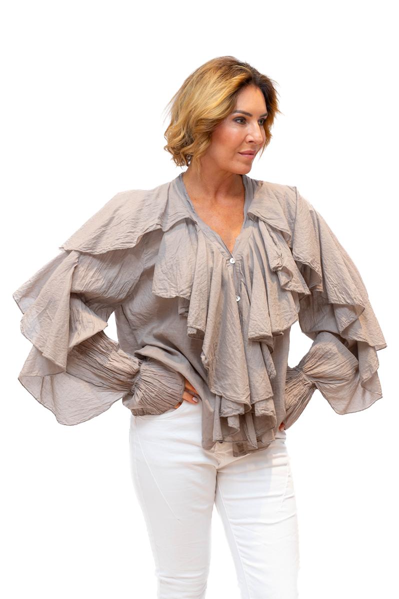 / Moscatto- Cotton Extra Ruffle Shirt