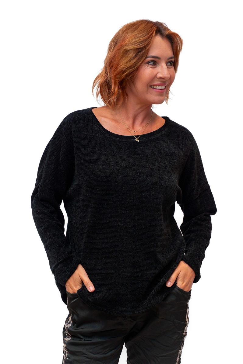 / Nelly- Black- Chennille round neck knit
