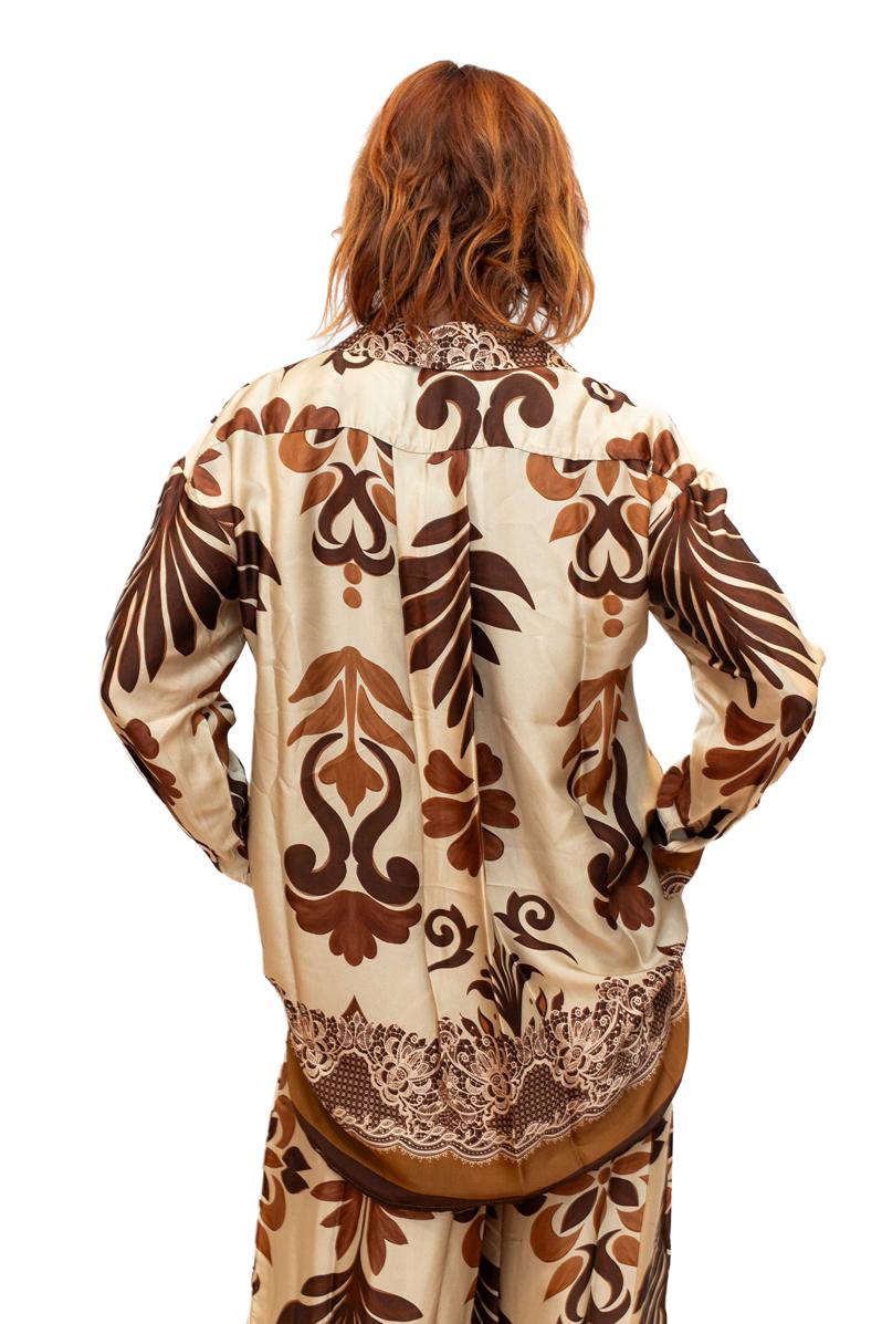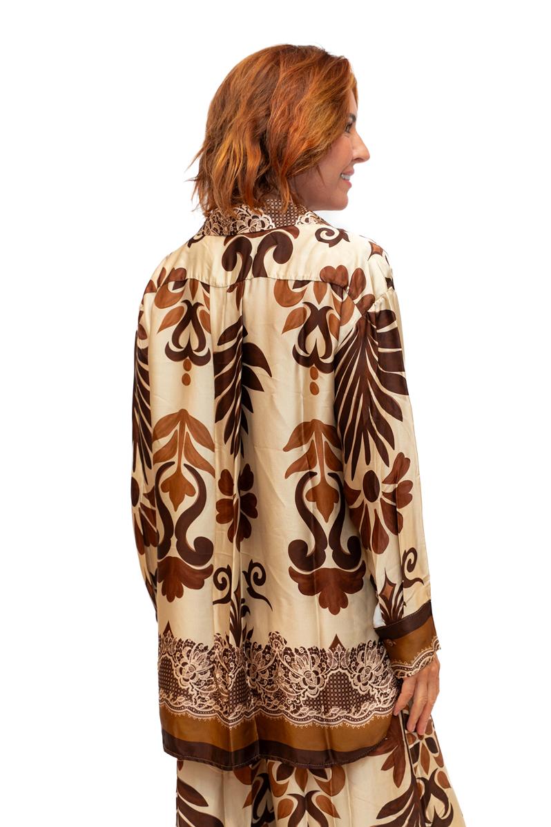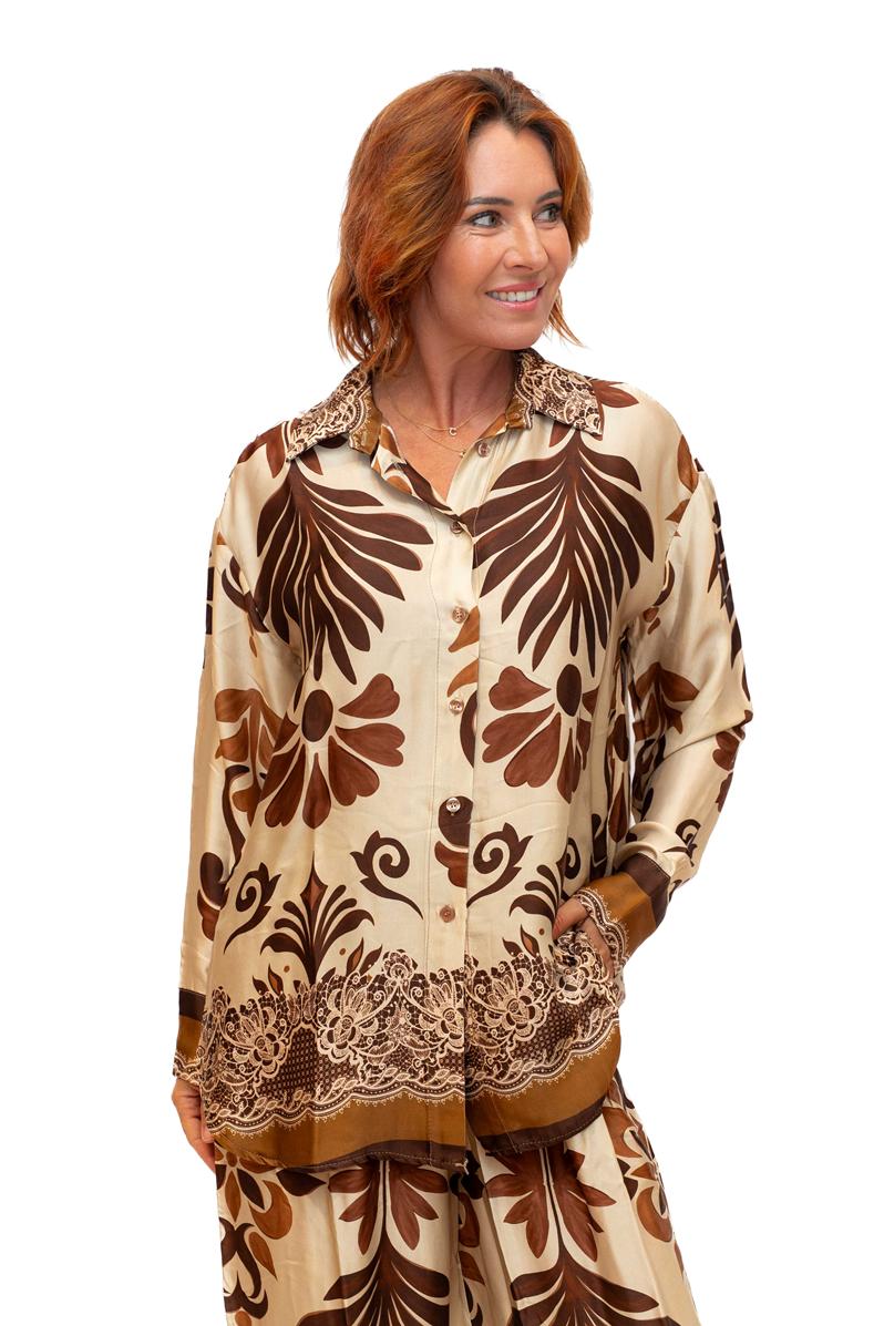/ Nevis Shirt- Beige- Stylised jungle leaf print shirt
