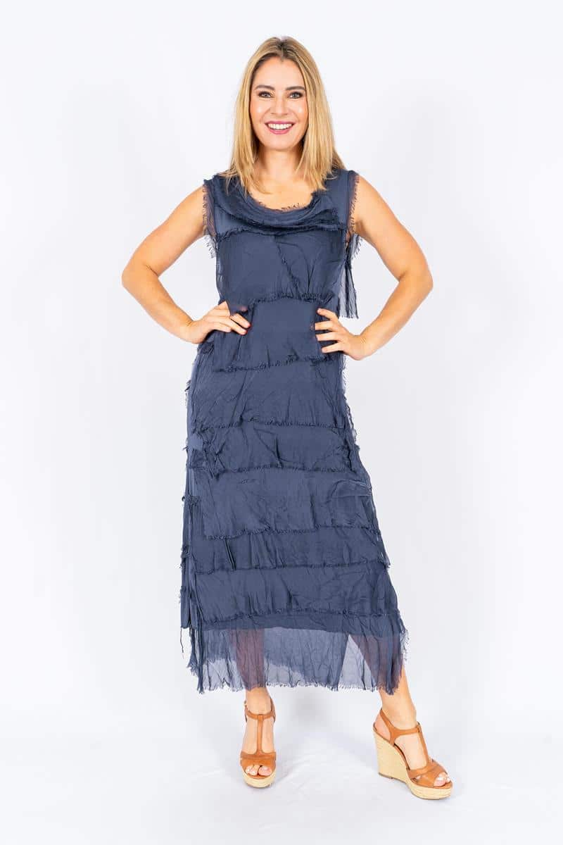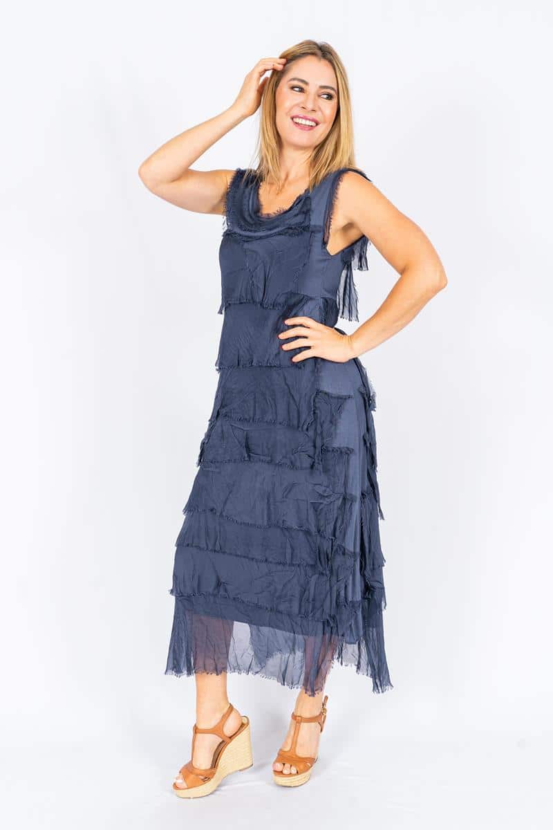Natalia – Navy Silk Layer dress