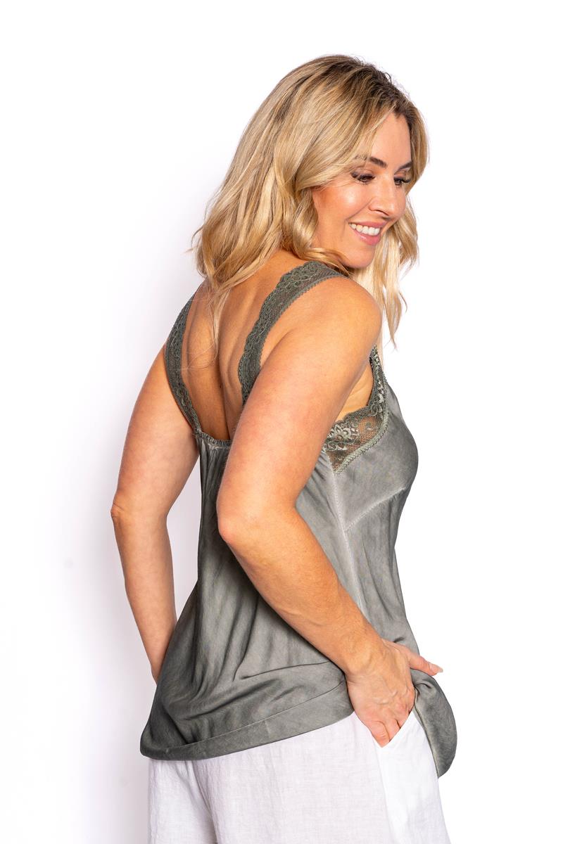 / Scala- Khaki – Satin bias cut camisole with lace trim