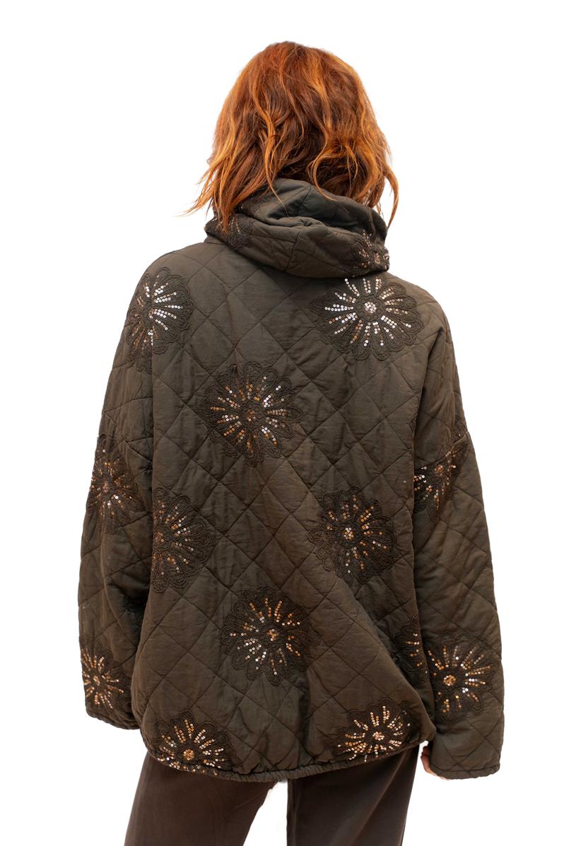 / Starflower jacket- Chocolate- Padded hooded jacketwith sequin flower
