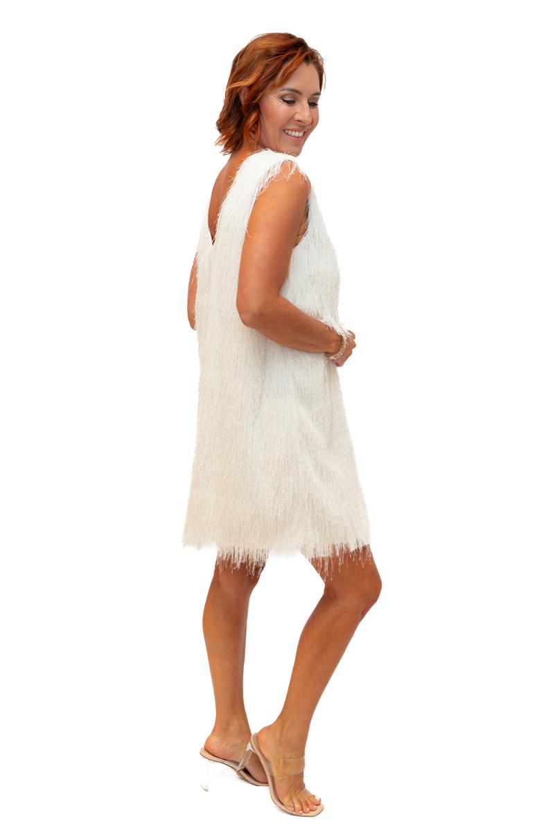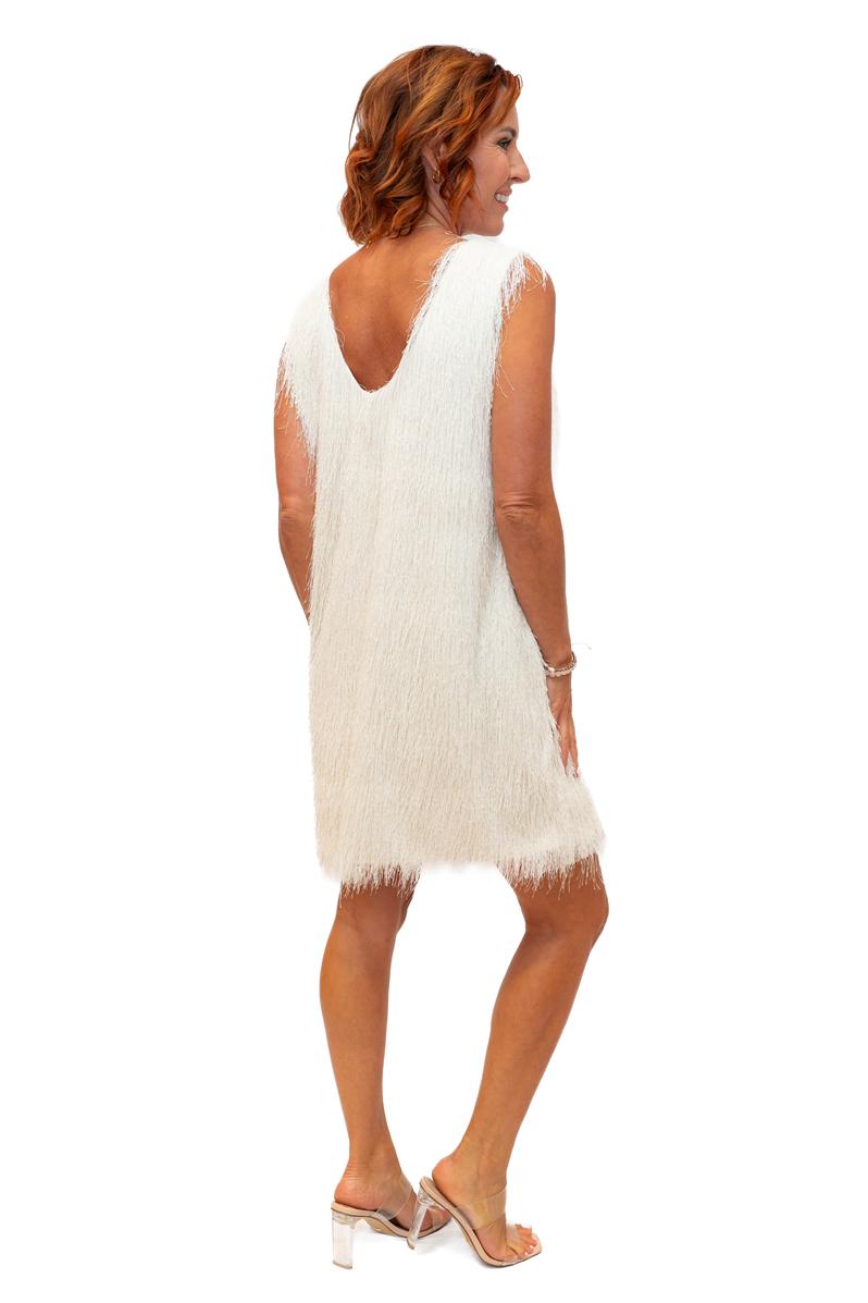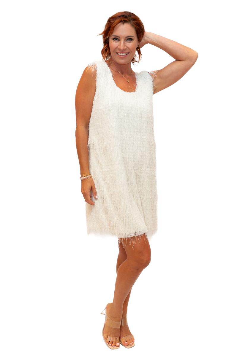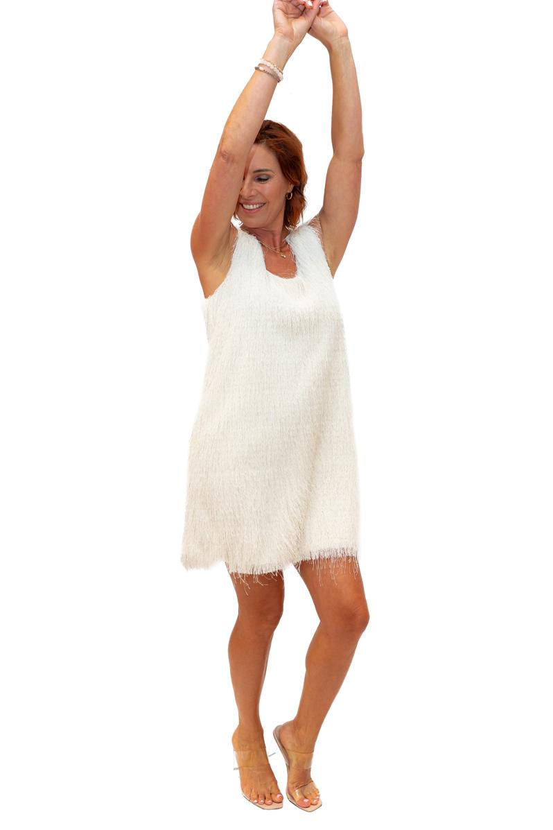 / Supreme- Cream- Woven scoop neck tassell dress