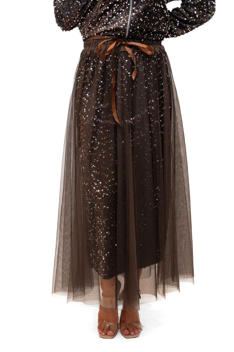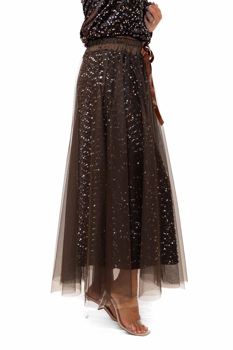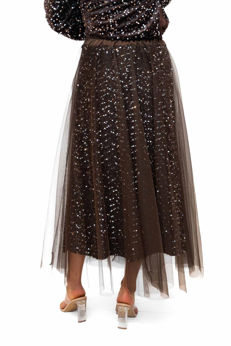 / Trinny Skirt -Chocolate- Sequin skirt with tulle overlay
