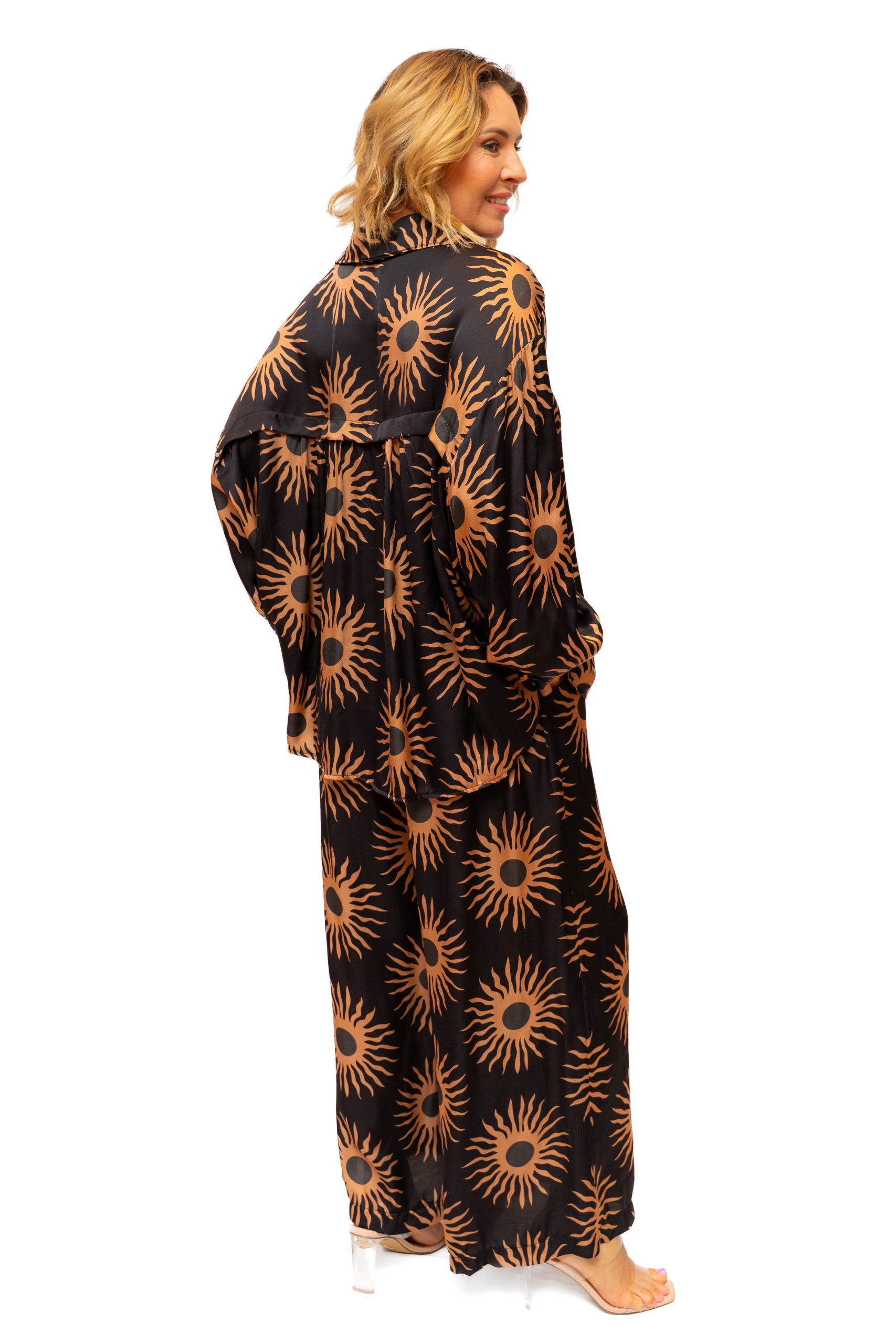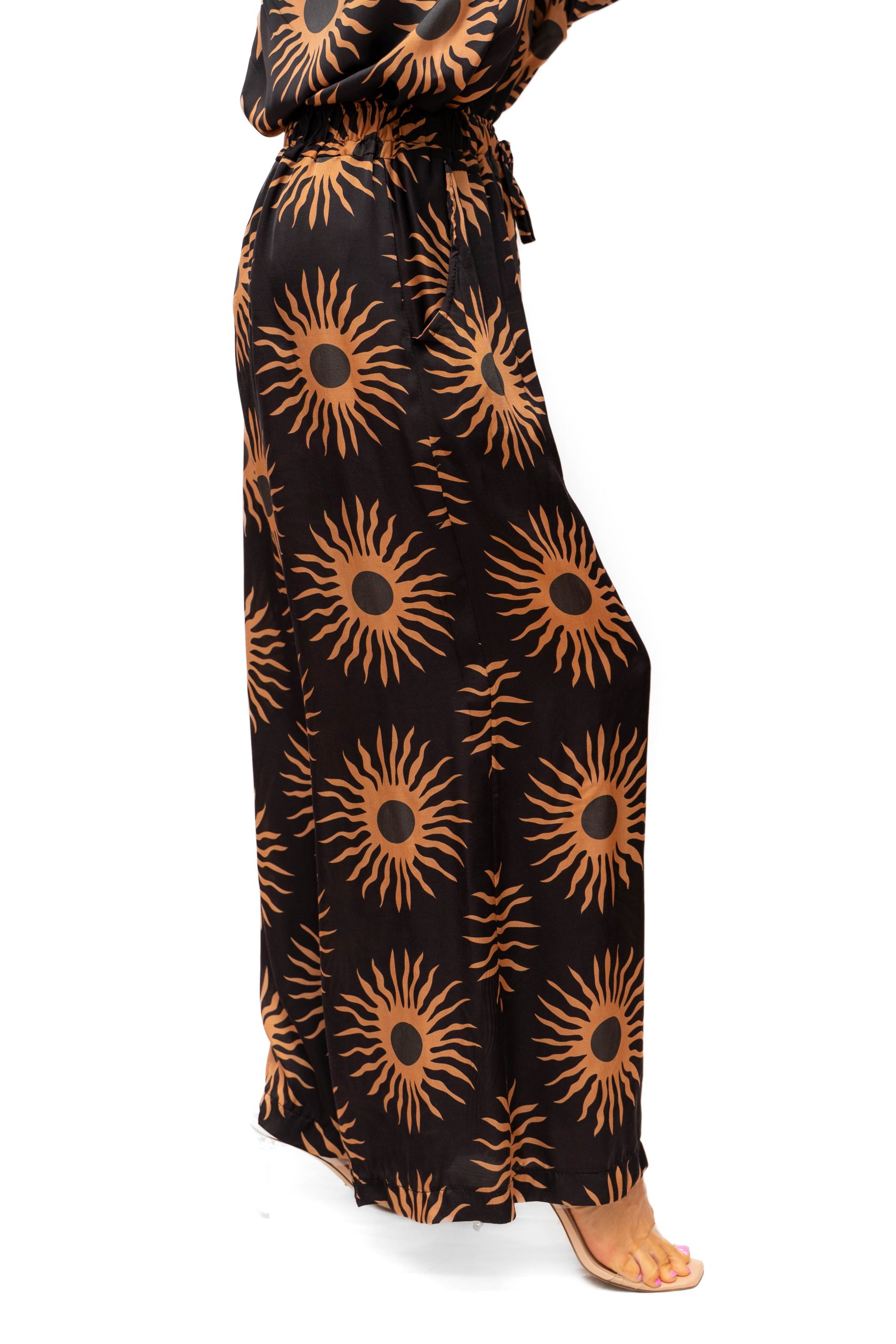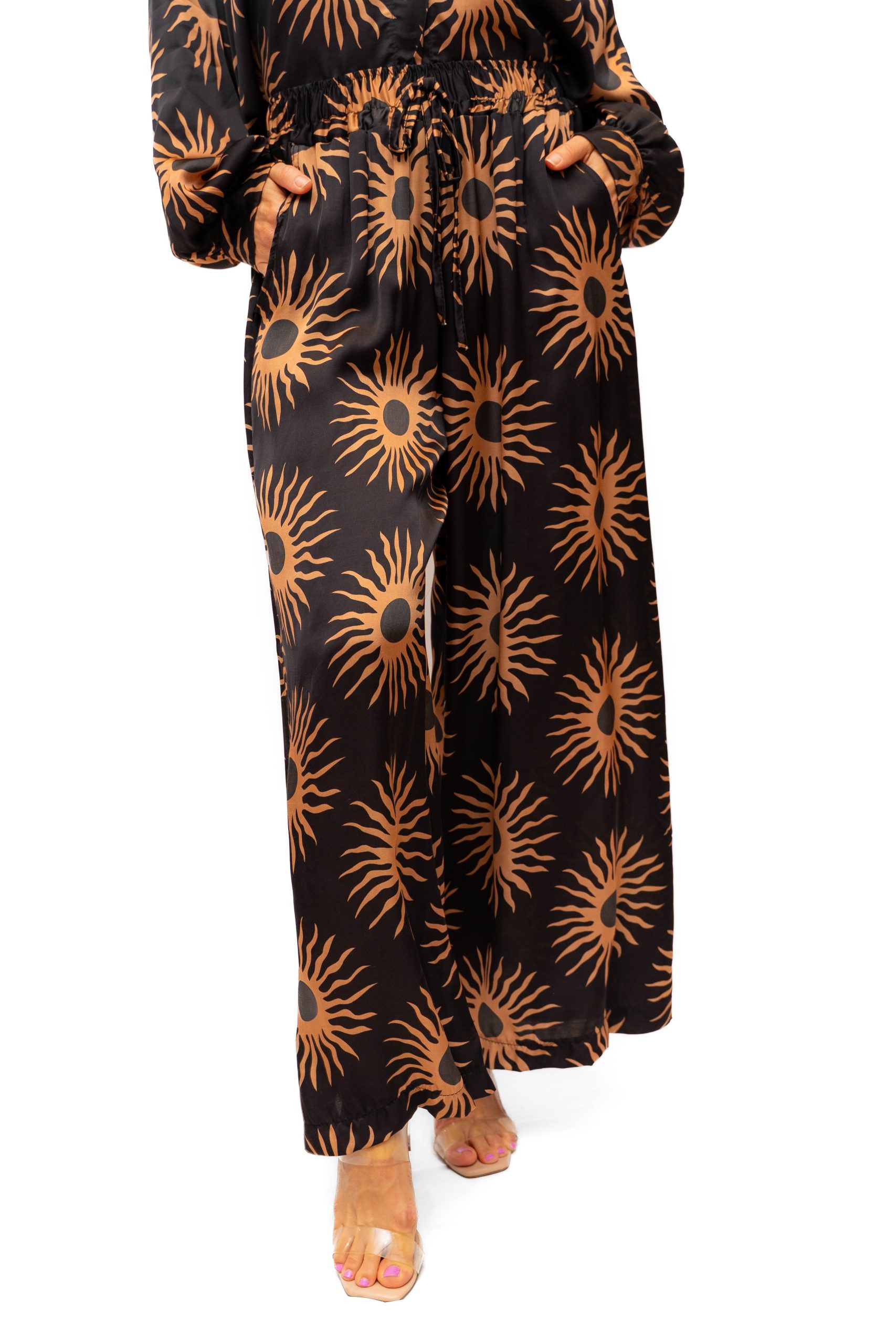 Silk Mix silky pant with sun print