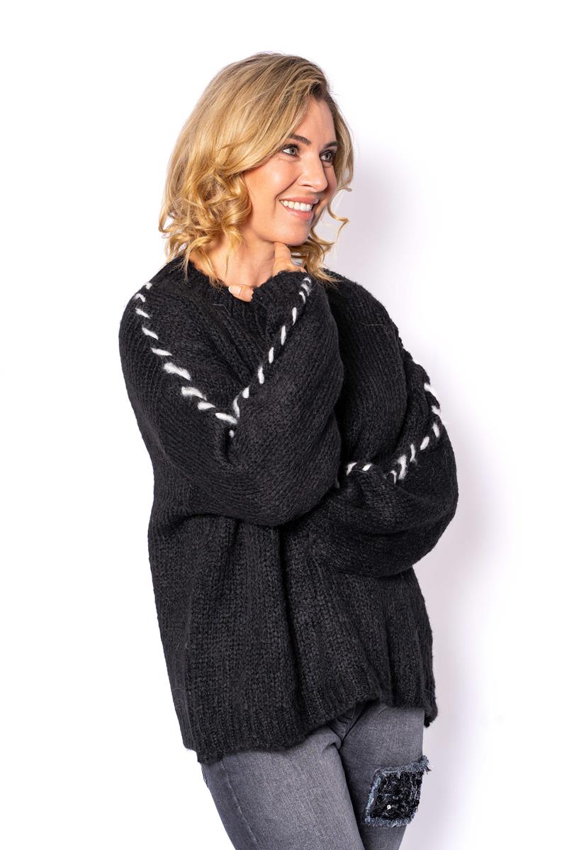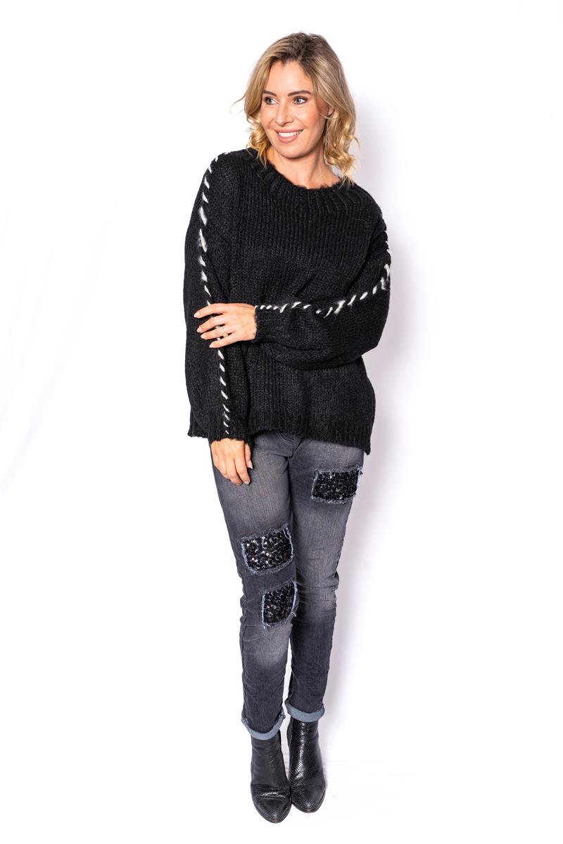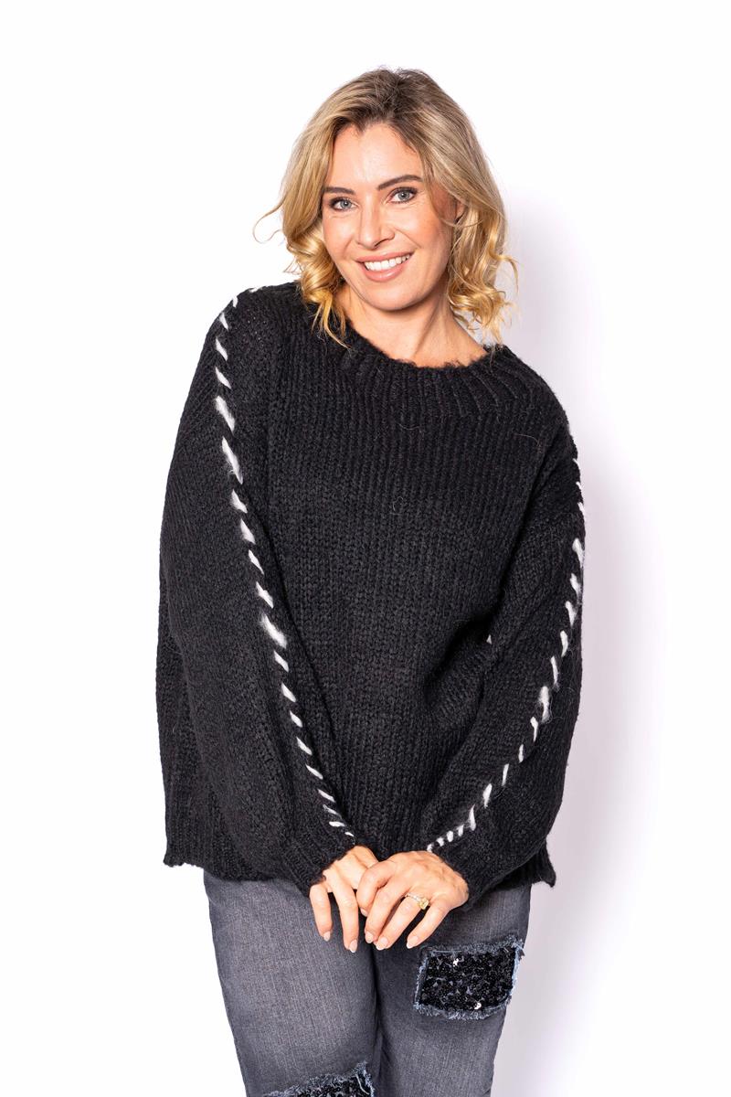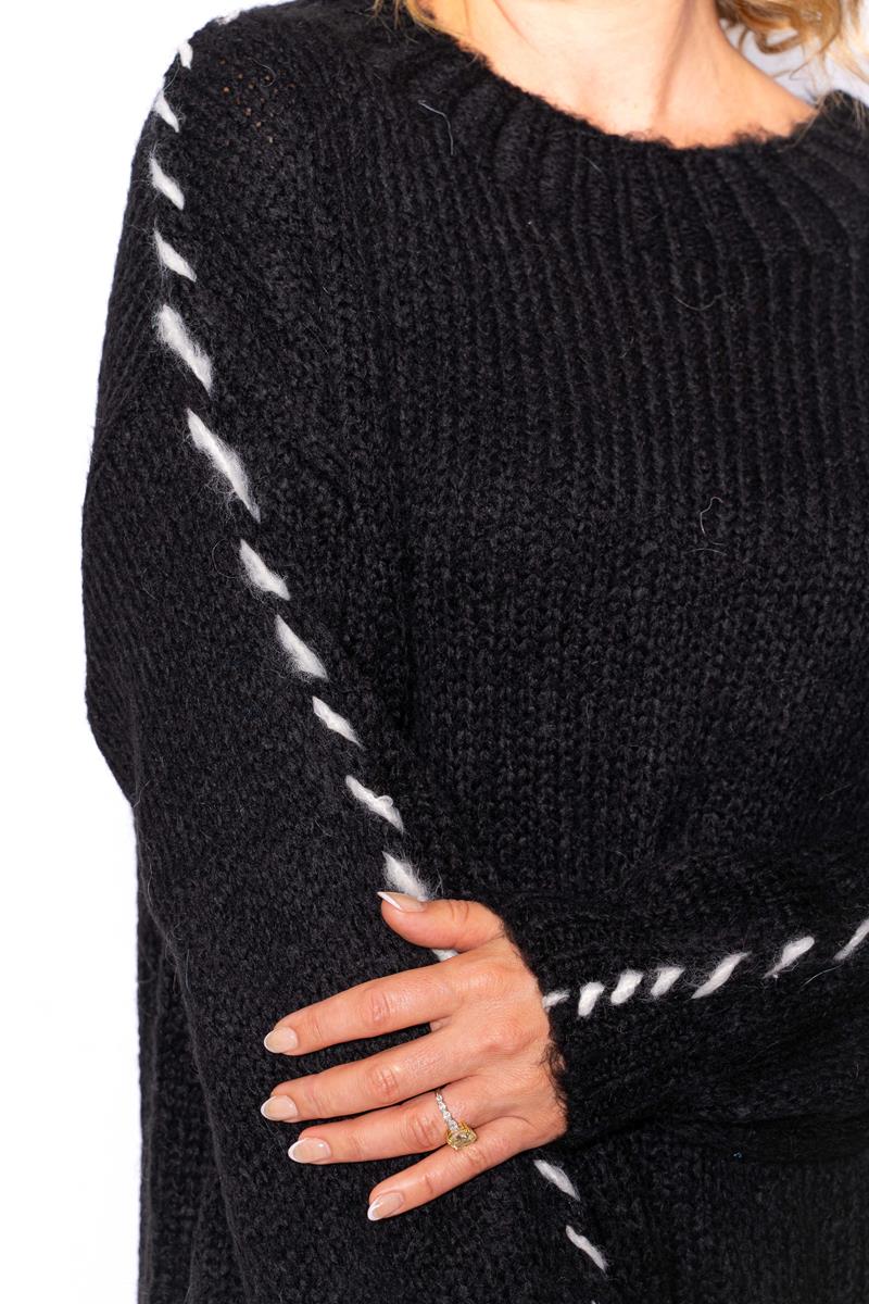 Whipper- Black- Relaxed fit jumper with whip stitch sleeve